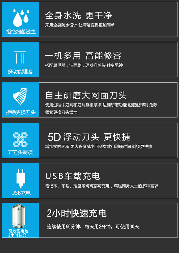 В оригинальной упаковке Интеллектуальный 5D электрический бритвенный нож головы артефакт головы нож зарядки бритья полностью Промытый нож бороды