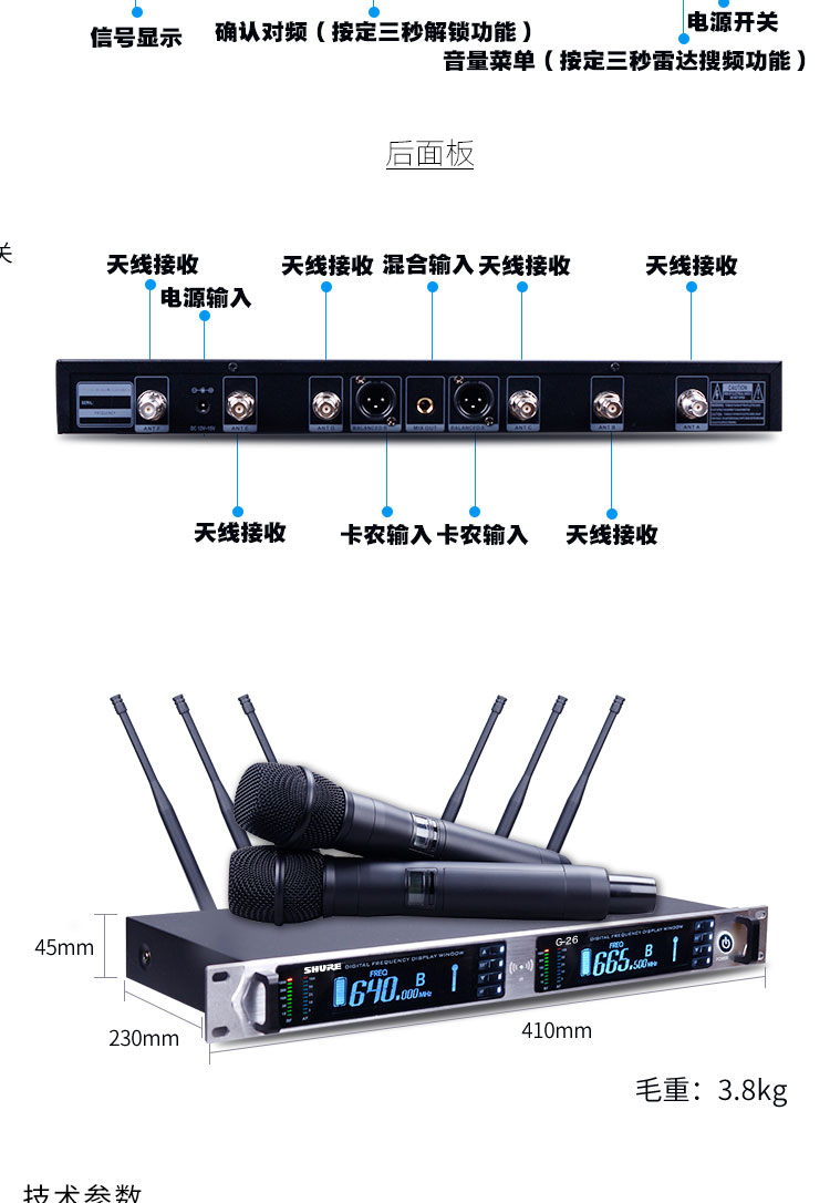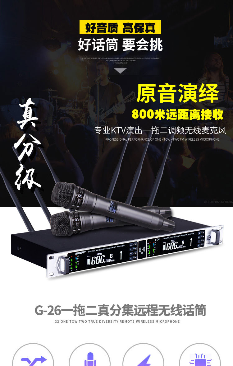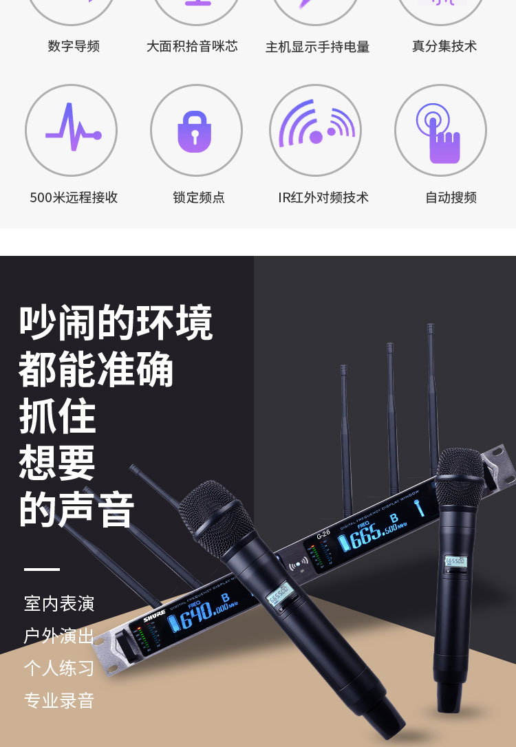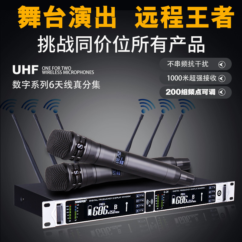 Shure / Shure без Линейный микрофон с истинным разнообразием U-образный сегмент с двумя домашними портативными микрофонами профессионального уровня KTV