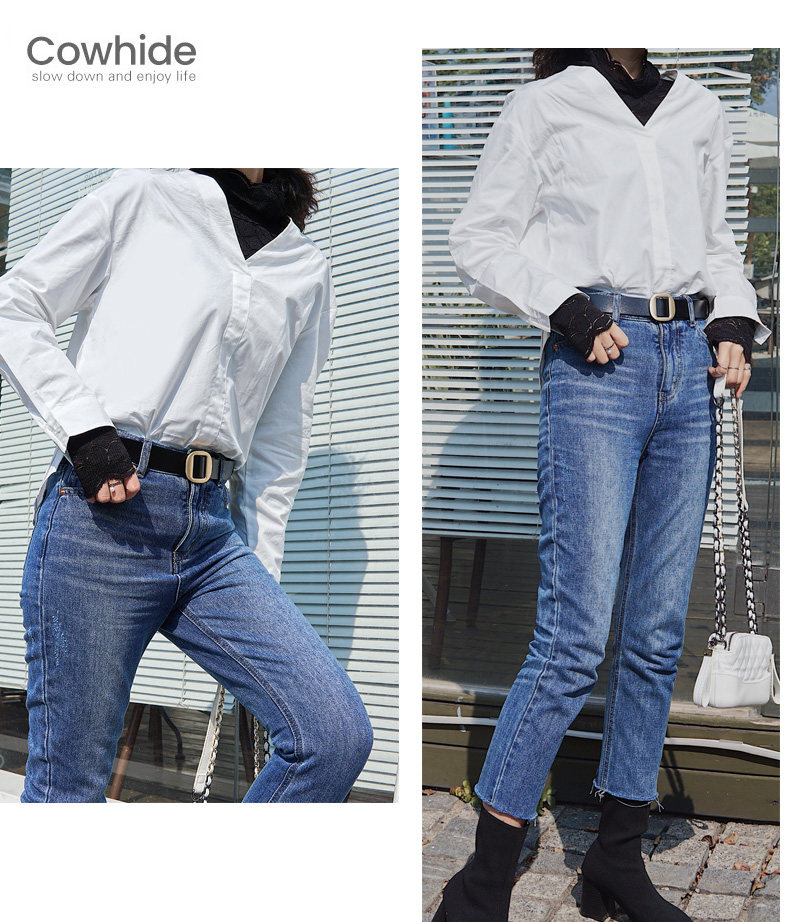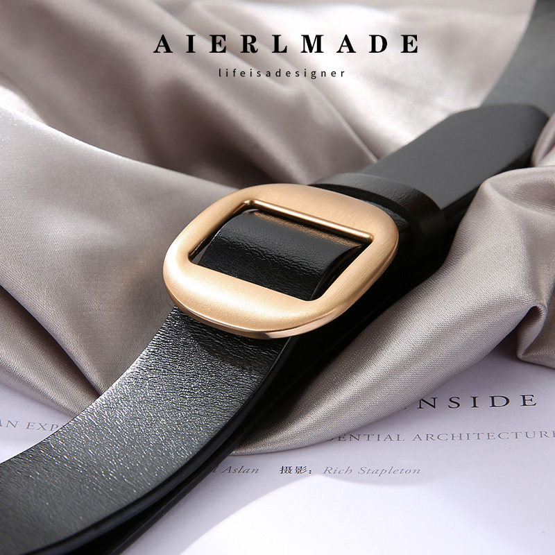 Пояс женский популярный Минималистский корейский Освобождать ремень украсить из натуральной кожи чистый кожаный джинсы приносить черный