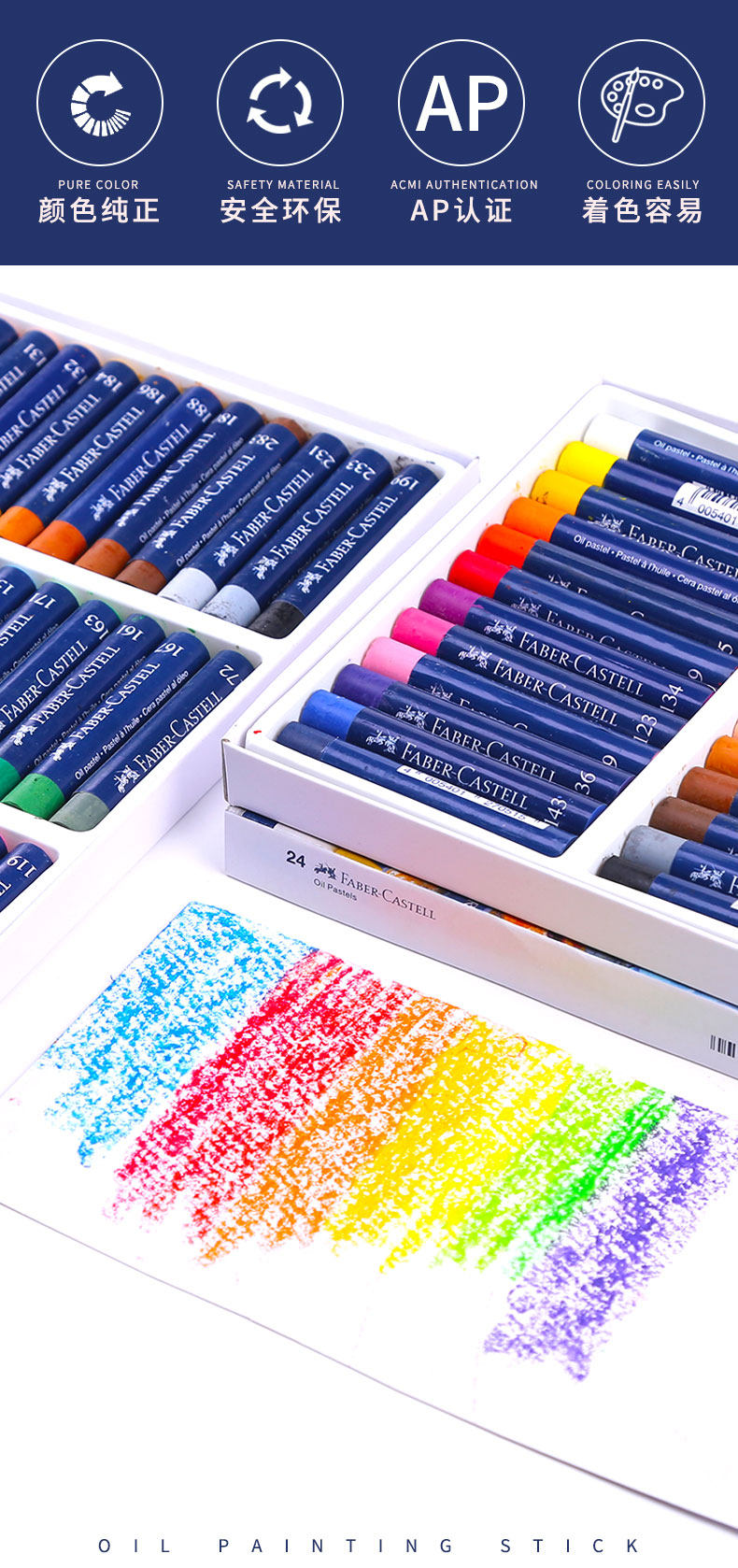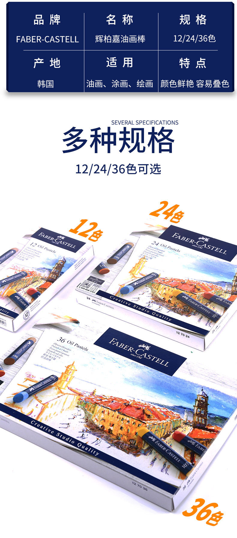 Faber Castell синий Коробка масляной пастели 24 цвета 36 цветов изобразительное искусство живопись ручная роспись масляной ручкой тяжелая цвет Жирная палка полностью моющийся цвет ручка цвет Краска-карандаш professional master soft crayons