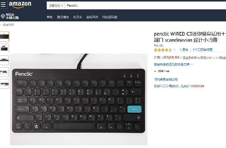 Penclic Wired C3 Mini клавиатура подходит для Windows IOS / OSX Linux / BSD матовый алюминий Небольшой 3 дополнительных USB -концентраторов Single 3.0 Scandinavian Design Small Small Design