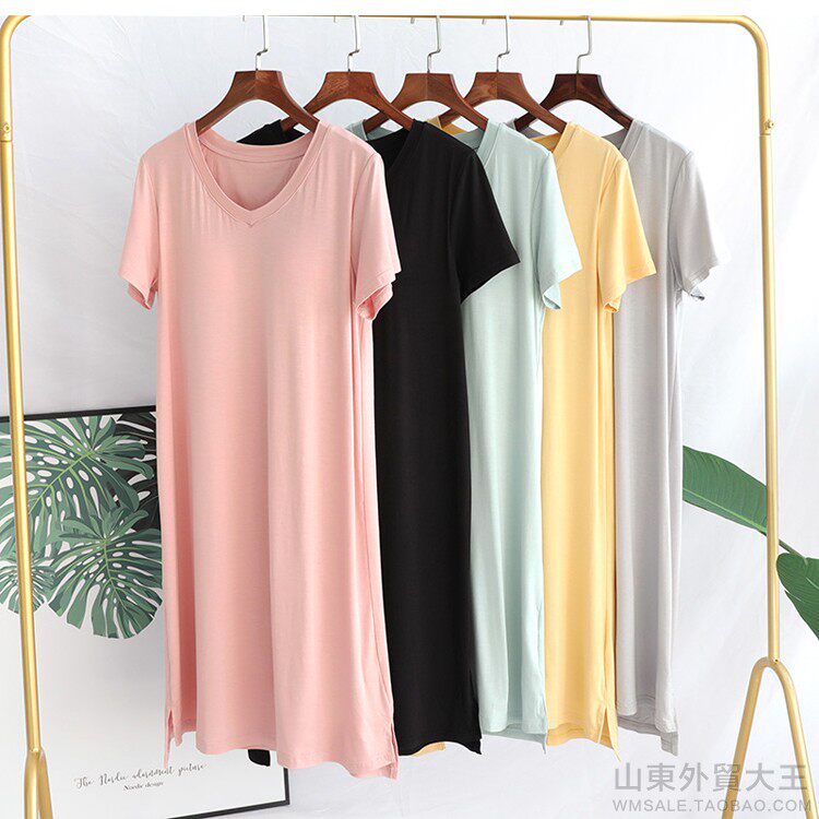 Спящая юбка с грудингом короткий рукав Делать поколение Летние пижамы свободно тонкими стиль Домашняя служба юбка V