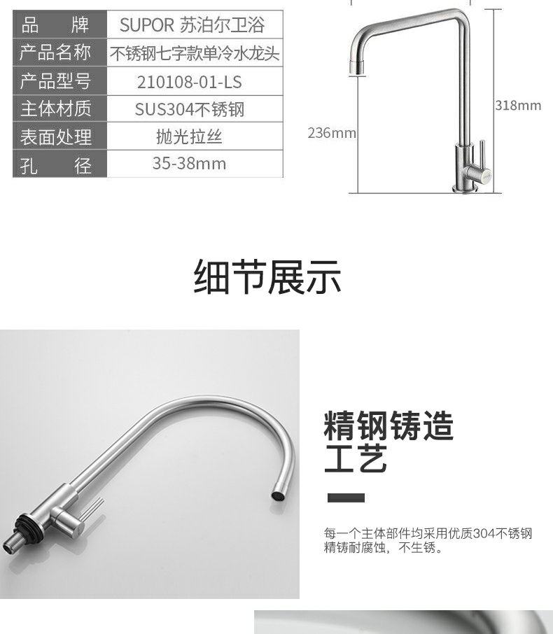 Торопиться новая коллекция Семья Мори 304 нержавеющая сталь один Смеситель с холодной водой для мытья горшки