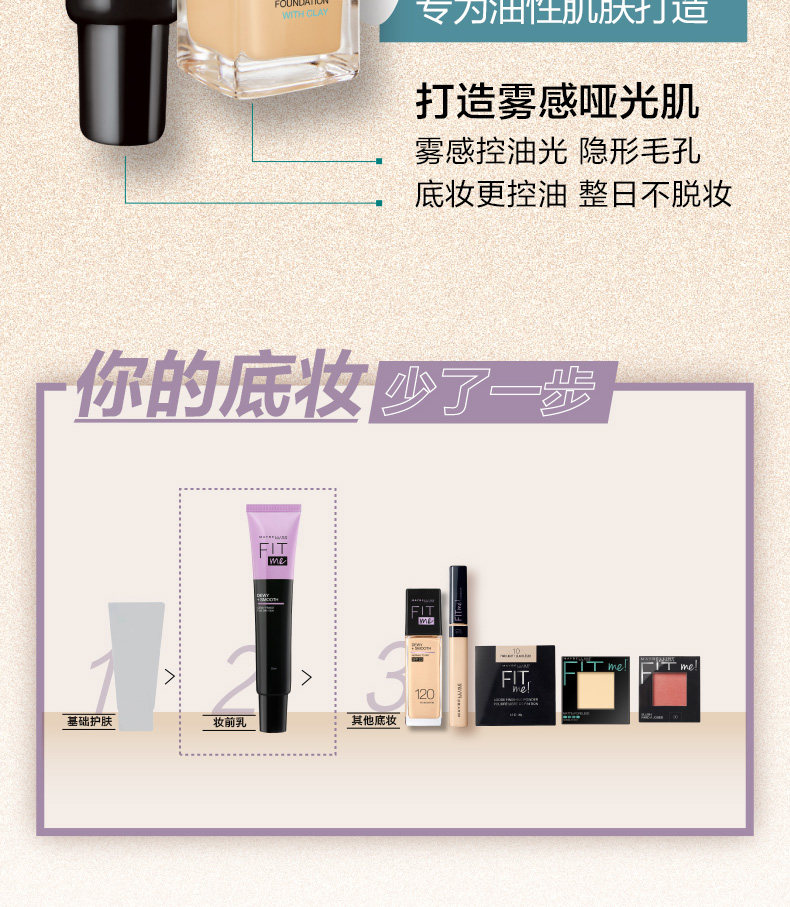 Maybelline Fitme Makeup Brand Cream Cream Женская подходит мне макияж, прежде чем делать высокая Увлажняющий контроль гидратации оригинал