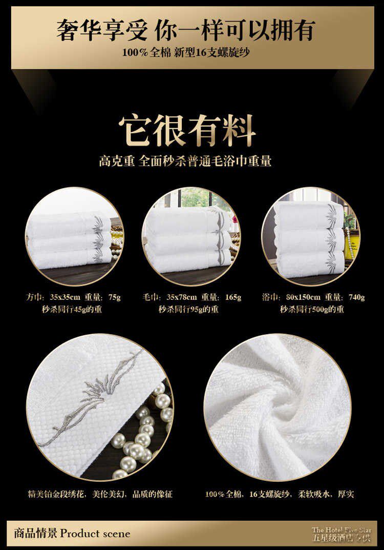 Пятизвездочный отель хлопок утепленный Квадратное полотенце большего размера полностью хлопок белый Принадлежности для ванных комнат гостиницы
