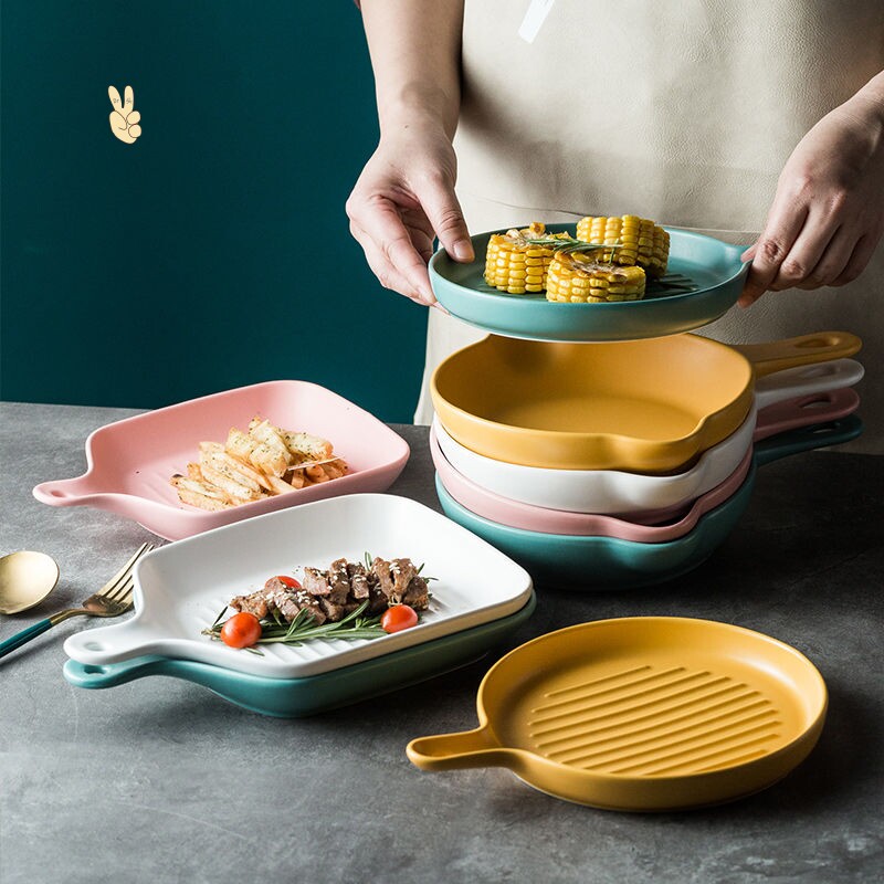 .Nordic Creative Plate Net. красный Посуда для выпечки духовки Керамическая бытовая ручка Западная еда Японская посуда