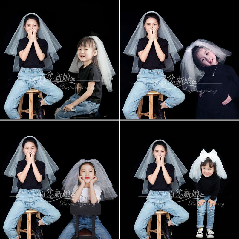 Родитель-ребенок мать детские детские вуаль короткий Tarnet Headnut Super Fairy 系 网 красный Фотографировать винтаж белый