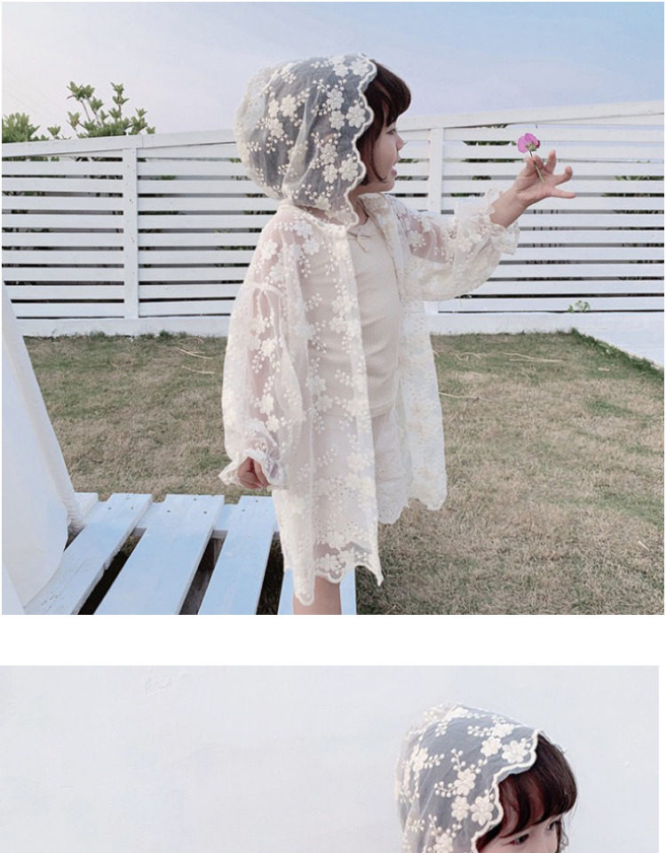 На девочку воздухопроницаемый УФ-УФ-сушка 2022 Лето детские Кружево кардиган куртка Девушка пляжная одежда кондиционер рубашка