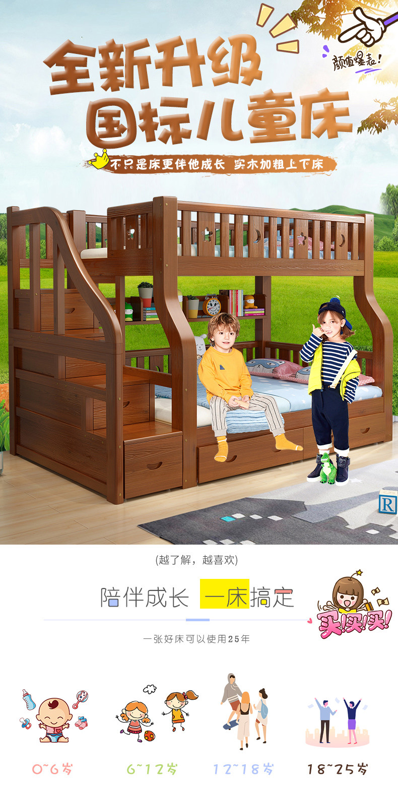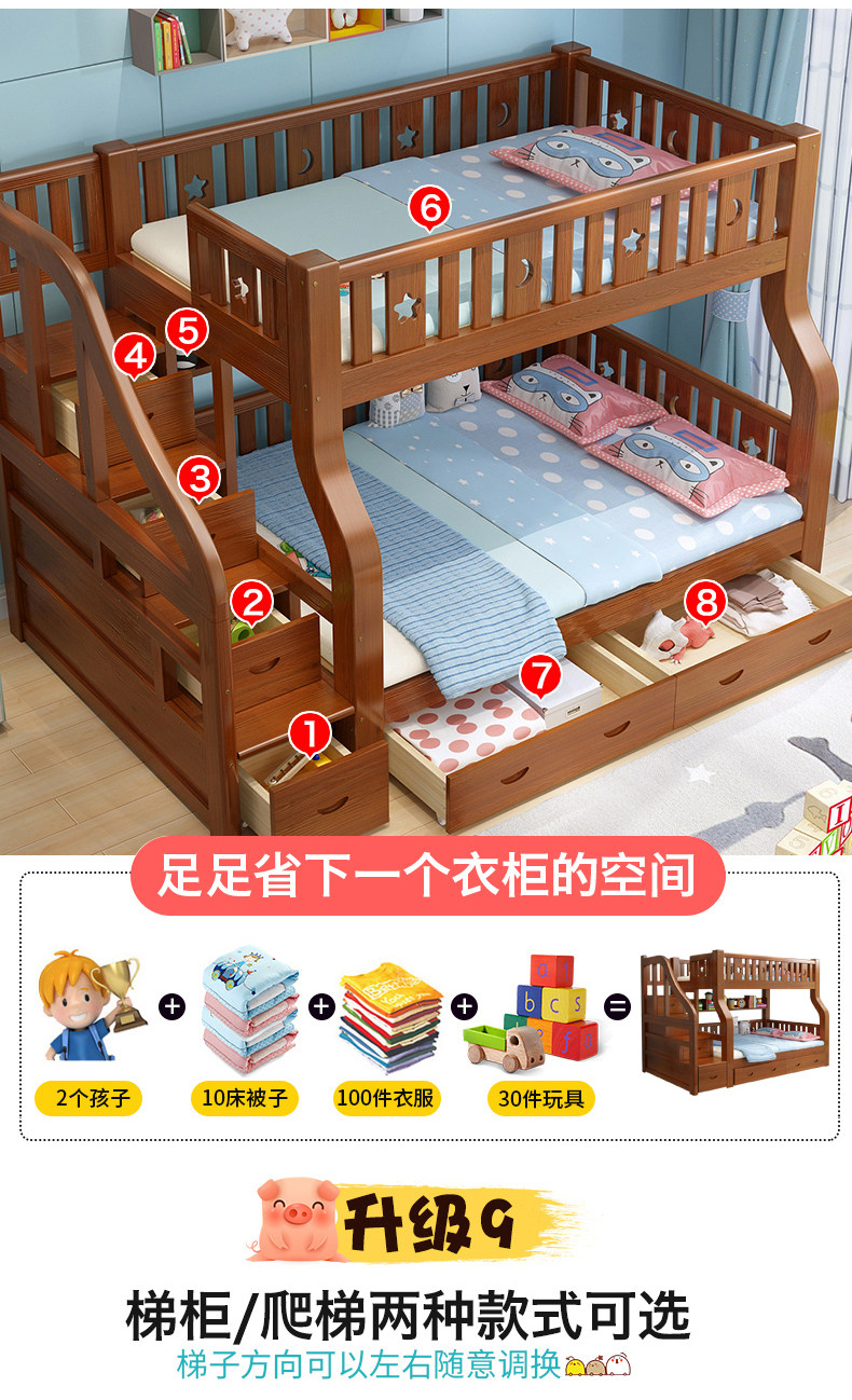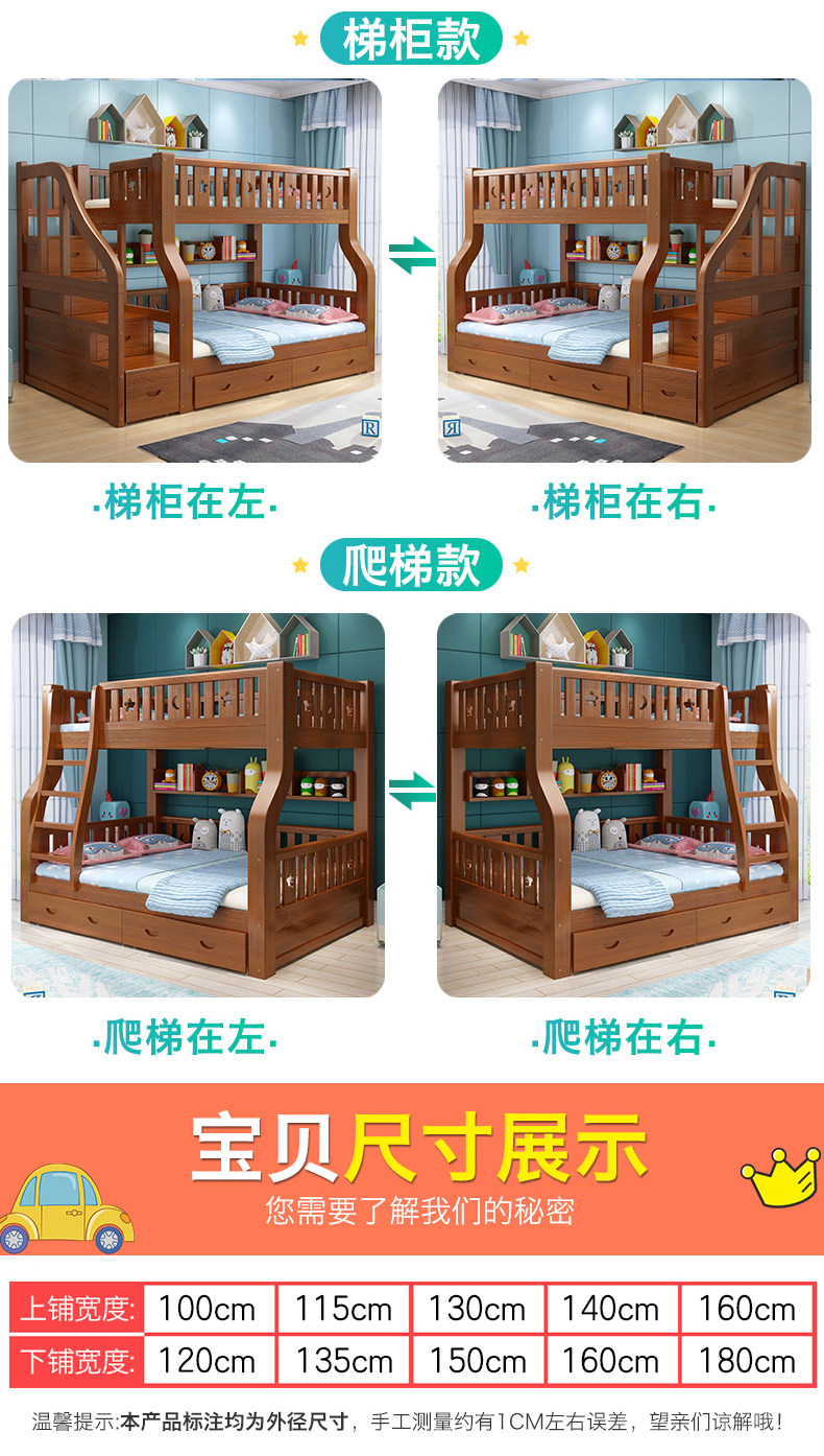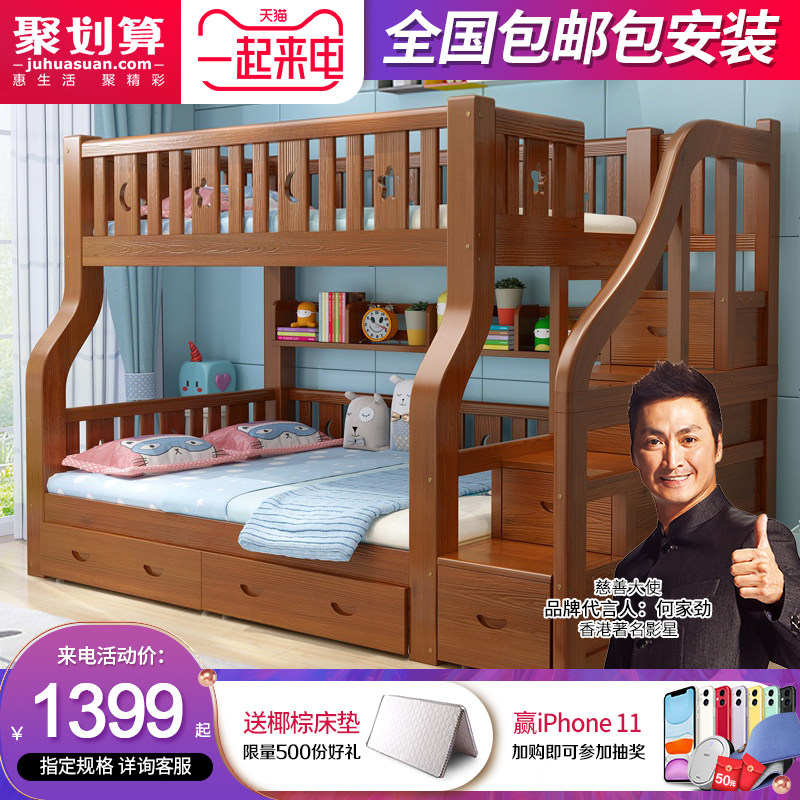 Детские Кровать твердой древесины верх и низ Кровать многофункциональный высокая Низкая кровать двухслойный Кровать взрослая материнская кровать верх и низ Павильон
