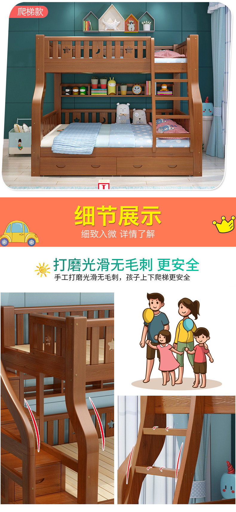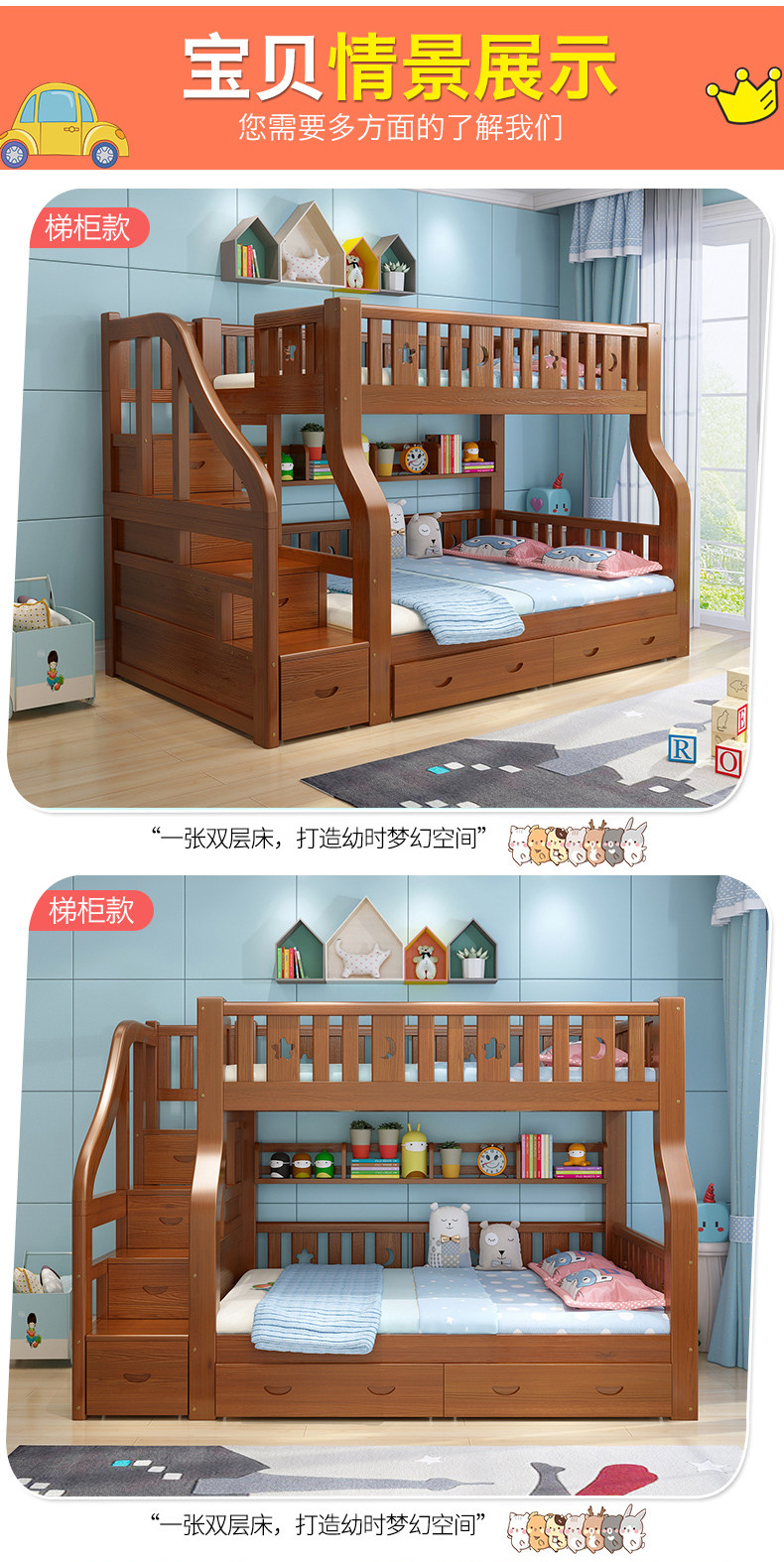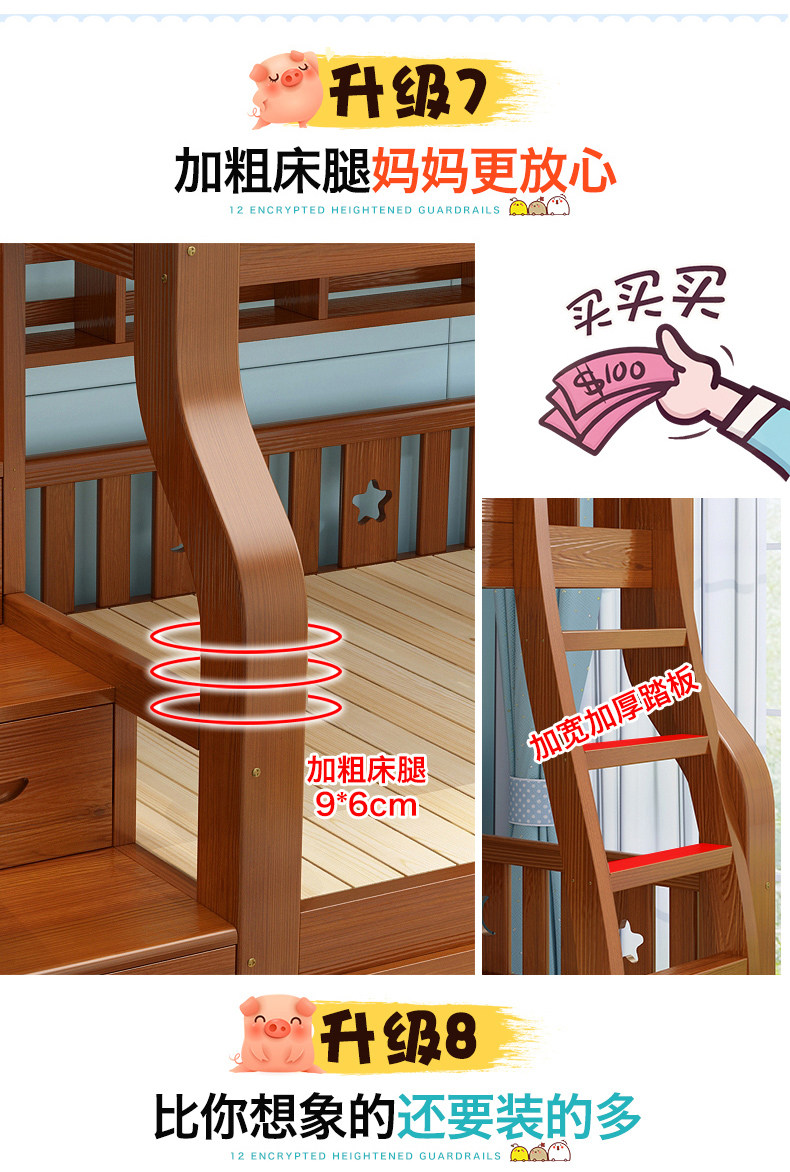 Детские Кровать твердой древесины верх и низ Кровать многофункциональный высокая Низкая кровать двухслойный Кровать взрослая материнская кровать верх и низ Павильон