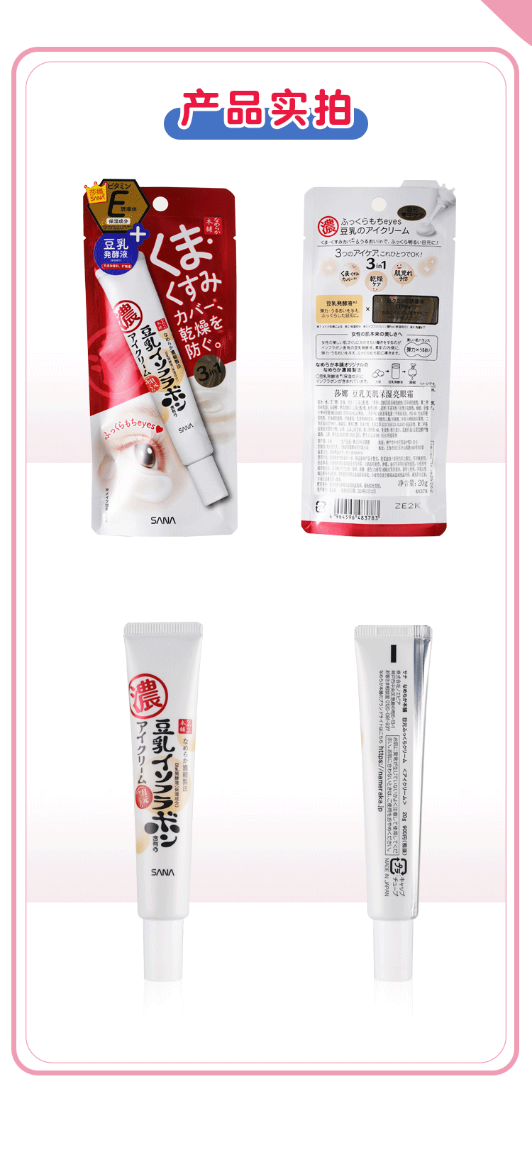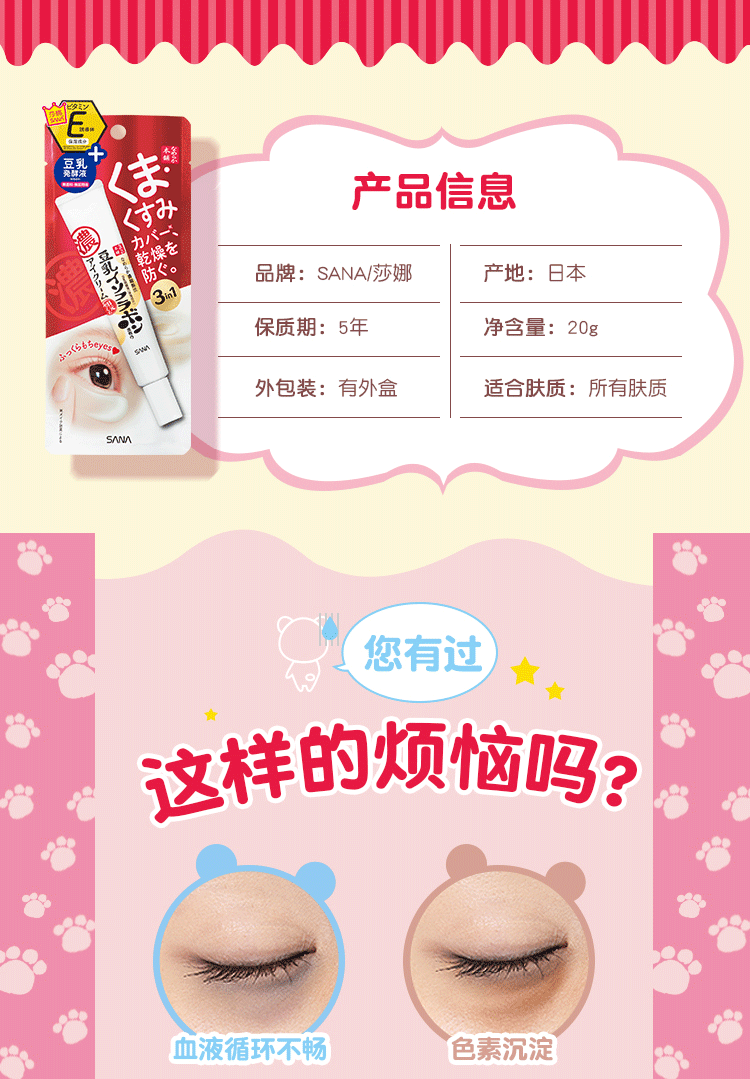 Япония импортировала сана соевое молоко черный Глазная крема для глаз эластичные Периферия