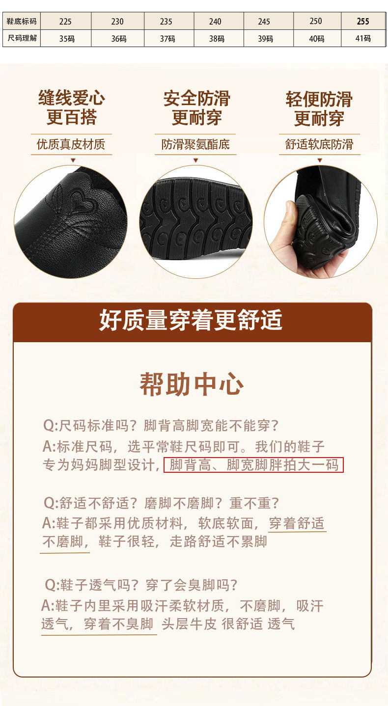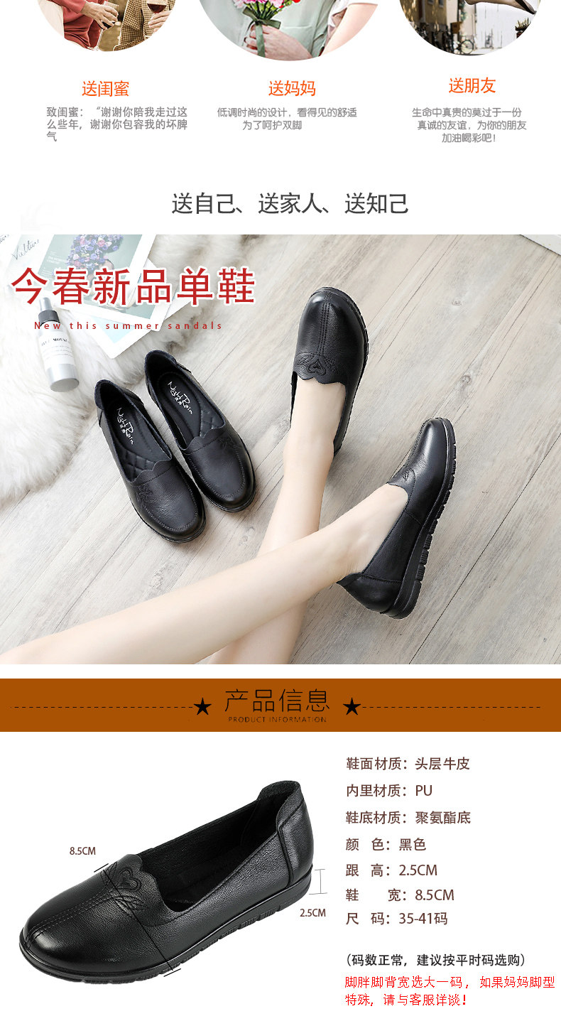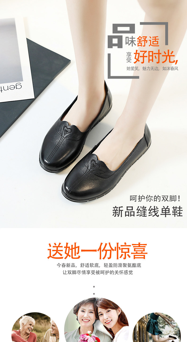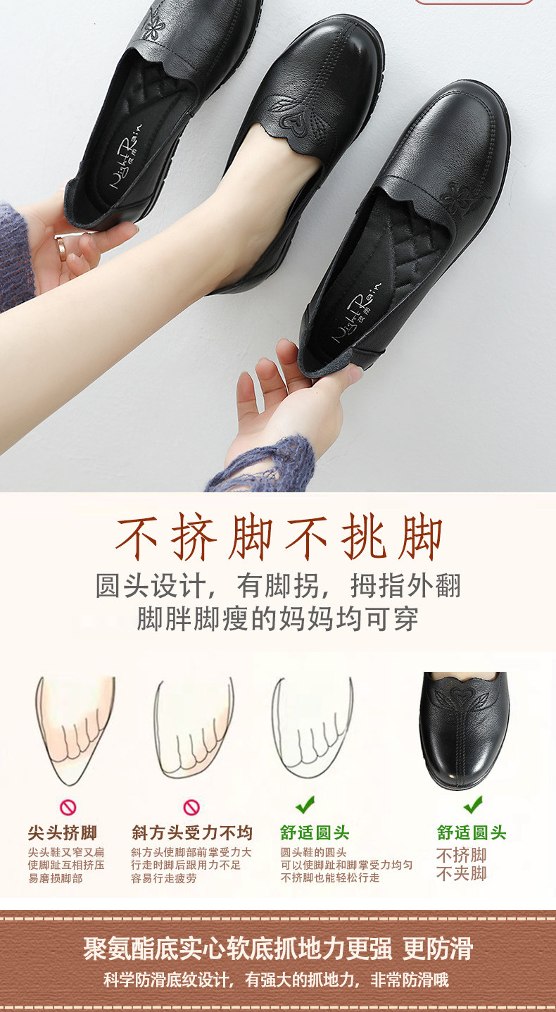 Демисезонный Материнская обувь из натуральной кожи Мягкое дно туфли на плоской подошве Обувь для женщин среднего и пожилого возраста кожаная обувь нескользящие Бабушка лето