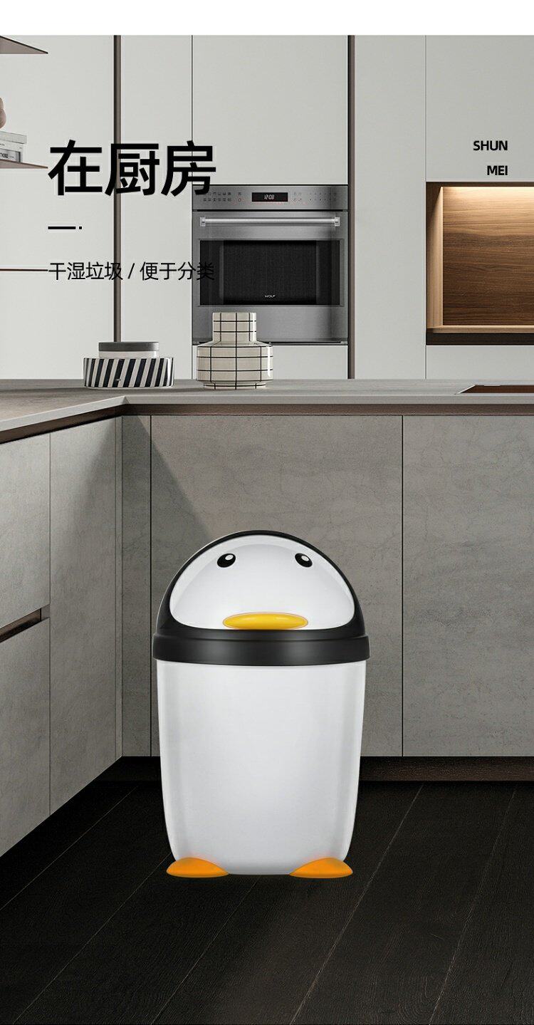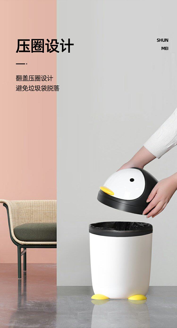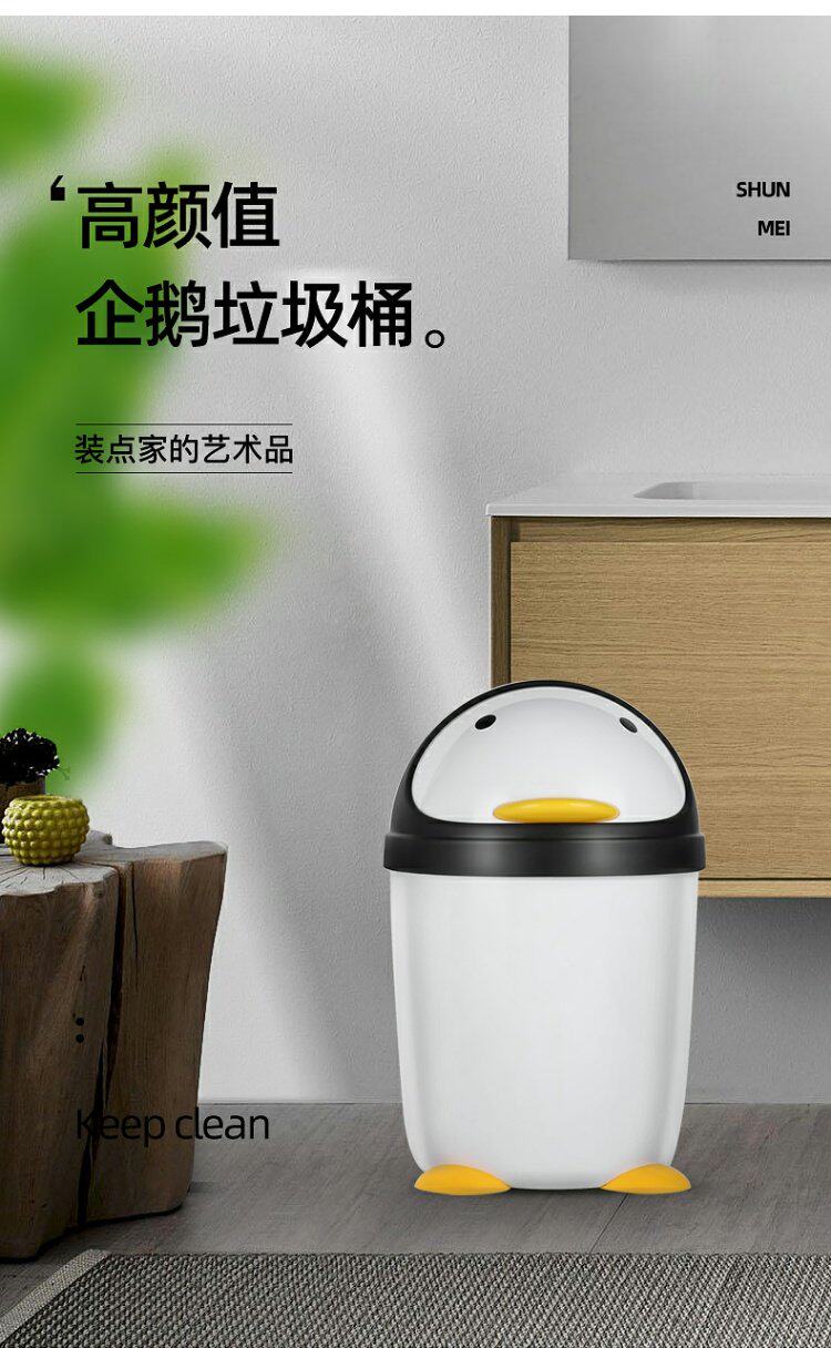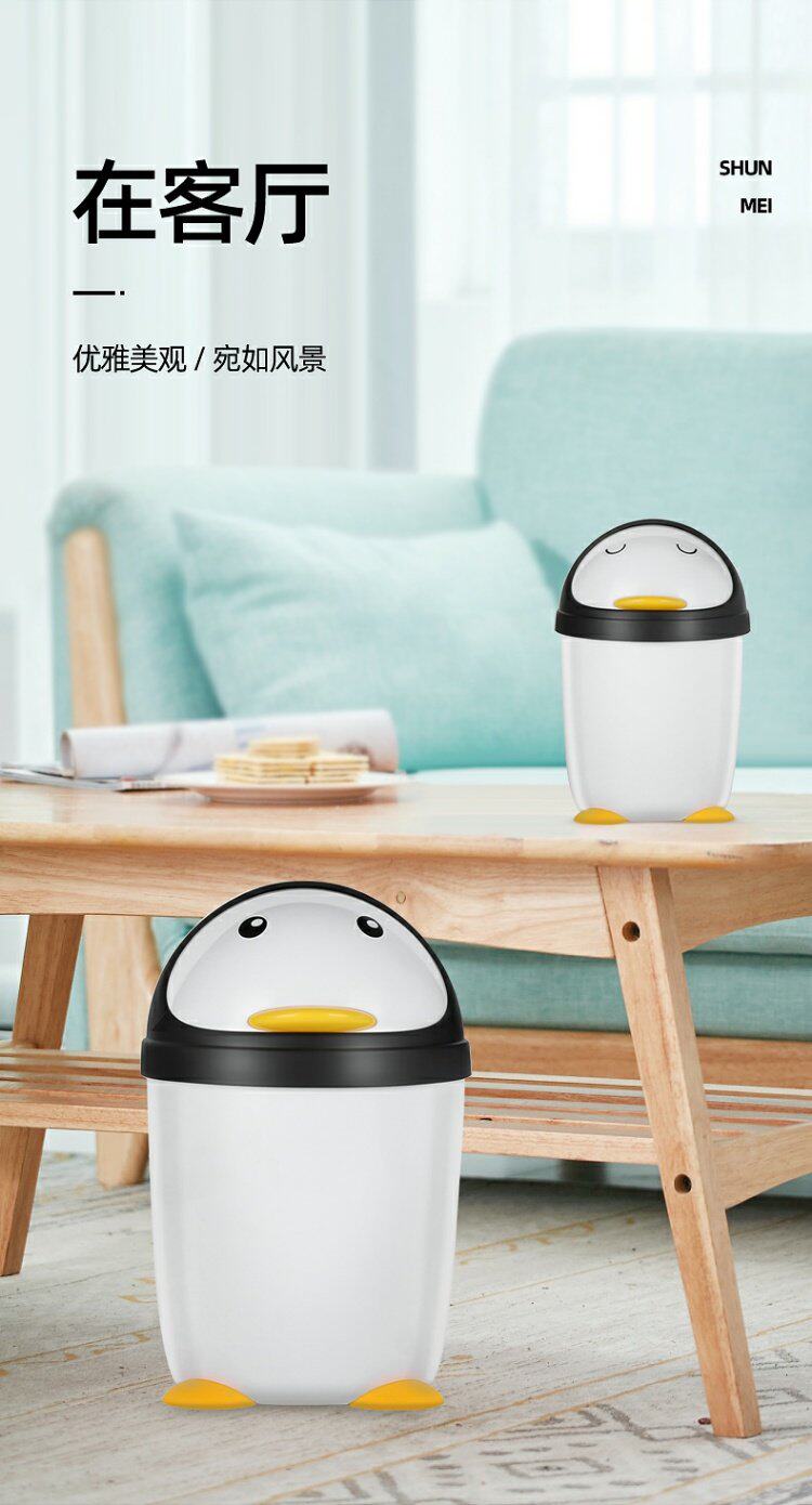 Shunmei туалет бак мусорный бак мультфильм пингвина пластикового круглого туалетного ведра белый механизм камеры настольный размер мусора