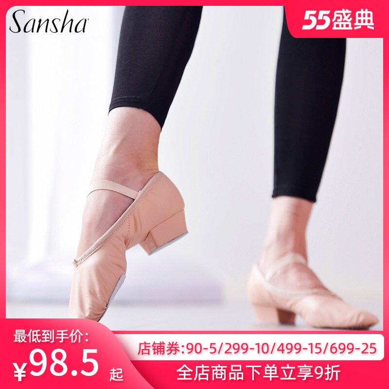 Санша оригинал Обувь для учителя балета из свиной кожи, импортная кожаная обувь с мягкой подошвой на среднем каблуке