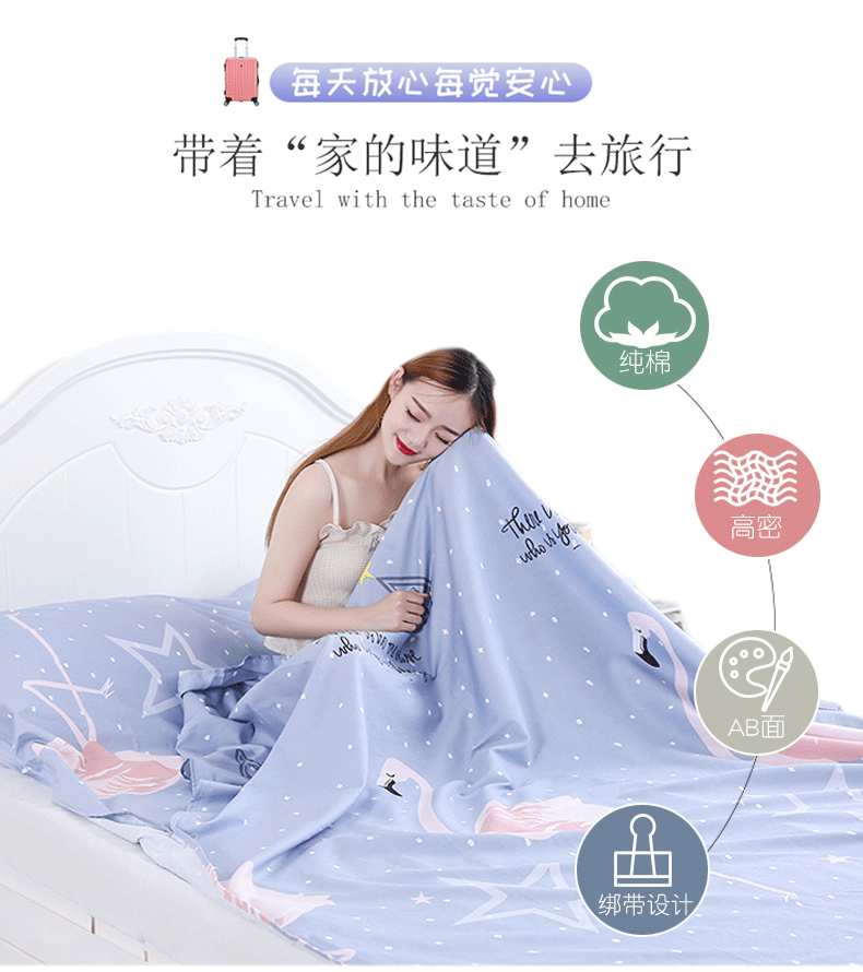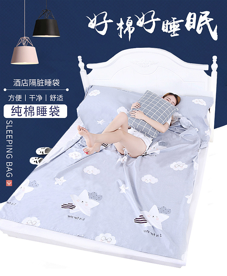 100% чистый хлопок Спальный мешок Travel Hotel Artifact Portable построенный двуспальная кровать один полностью хлопок Путешествие изолированные спальный мешок