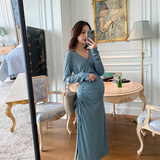 Беременные женщины весна французское платье тонко приталенный длинный рукав платье фасон средней длины стиль Кормление юбки, кормление летом стиль западный стиль