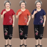 Толстый миссис Летний чистый хлопок Конопля комплект 70-летний 80 середина среднего возраста женщина мать старик одежда бабушки короткий рукав