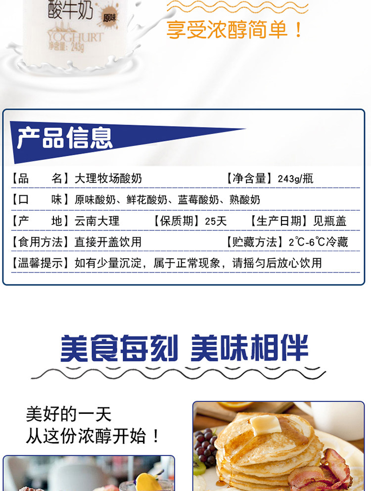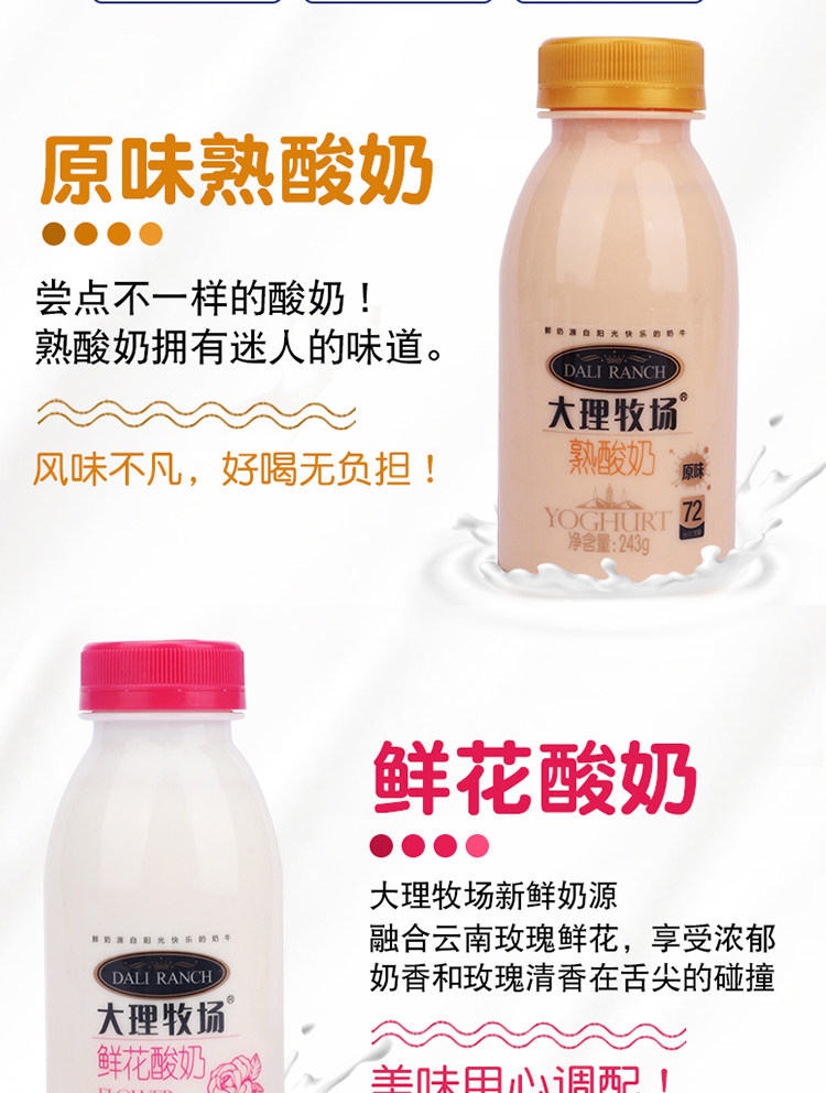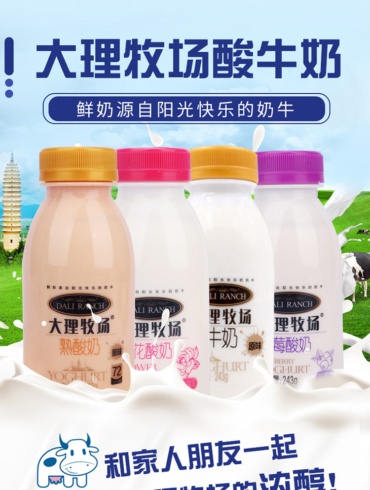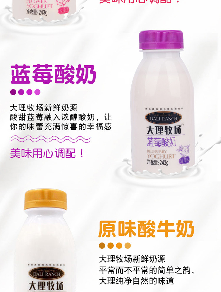 Европа интерьер Dali Pasture Yogurt 12 бутылки / 6 бутылки Юньнань Низкотемпературный йогурт Оригинальные цветы синий Малиновые фрукты