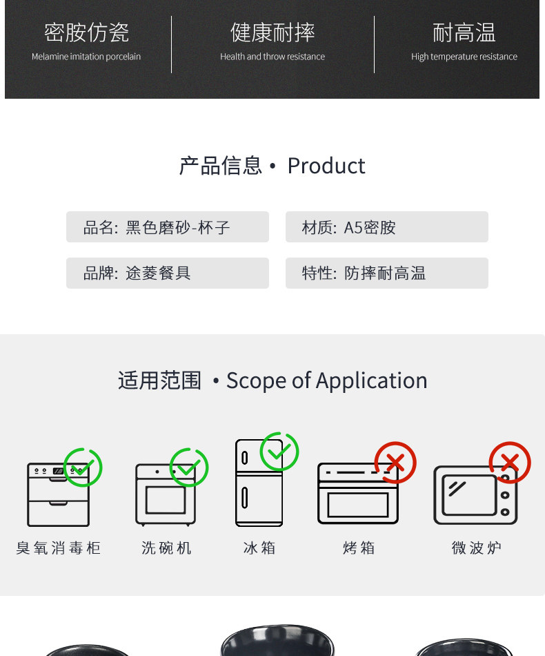 Меламиновая чашка черный пластик копия Фарфоровая чашка японской чайной чаш