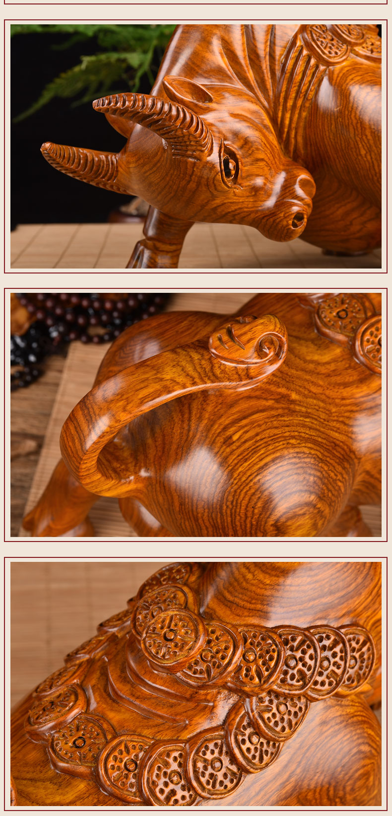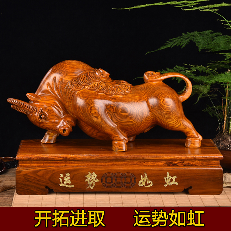 Корова красный Деревянная древесная резьба скота твердая древесина резьба зодиака скота настольная мебель для настольных настольных настольные украшения