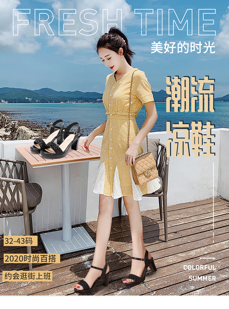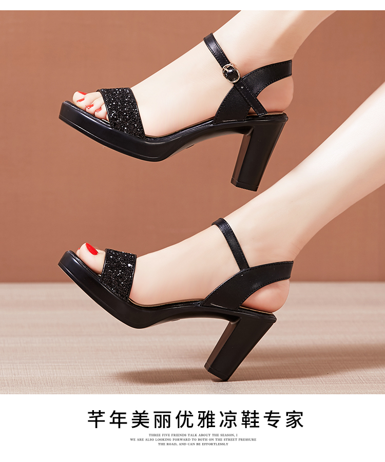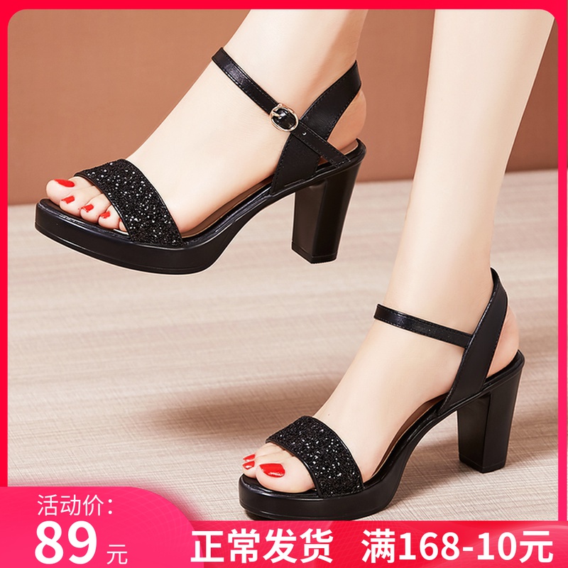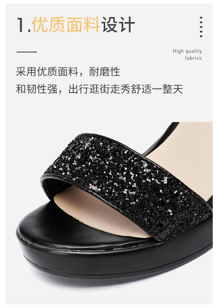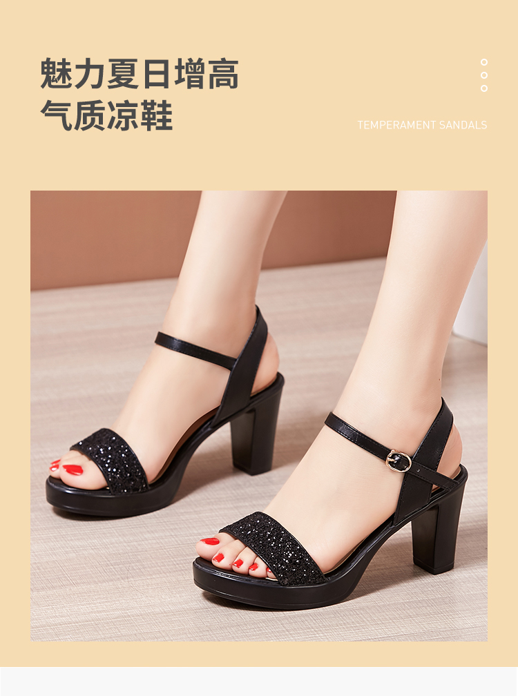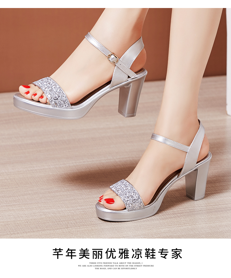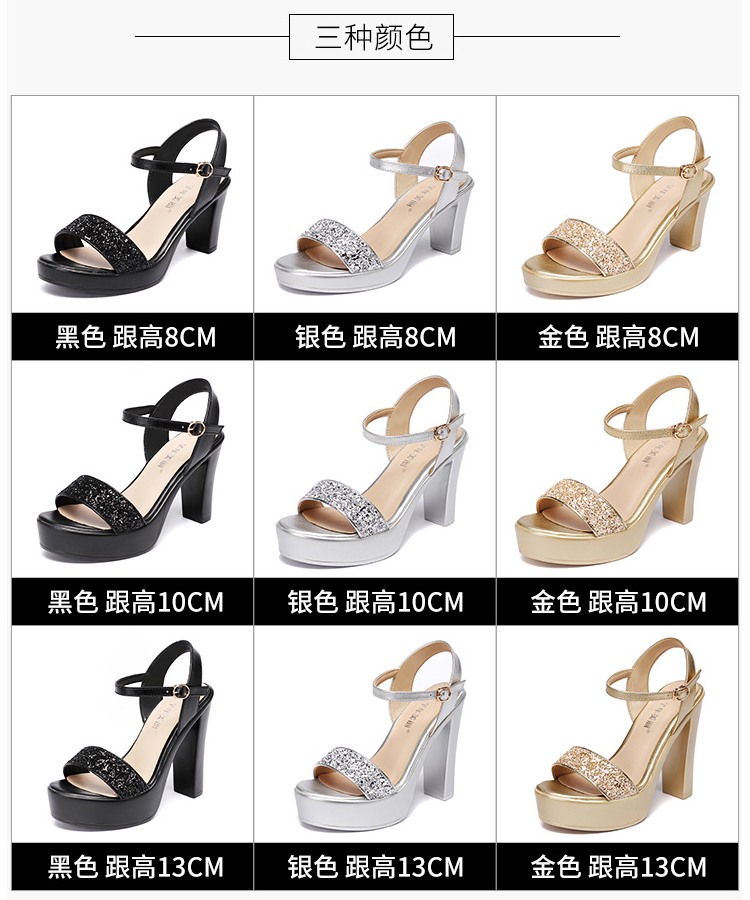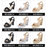 Средний каблук широкий каблук Сандалии женские 2021 лето новая коллекция водонепроницаемый башня пайетки большой размер 40-43 на высоком каблуке ОТКРЫТЫЕ ДЫ СУДАЛЛИ