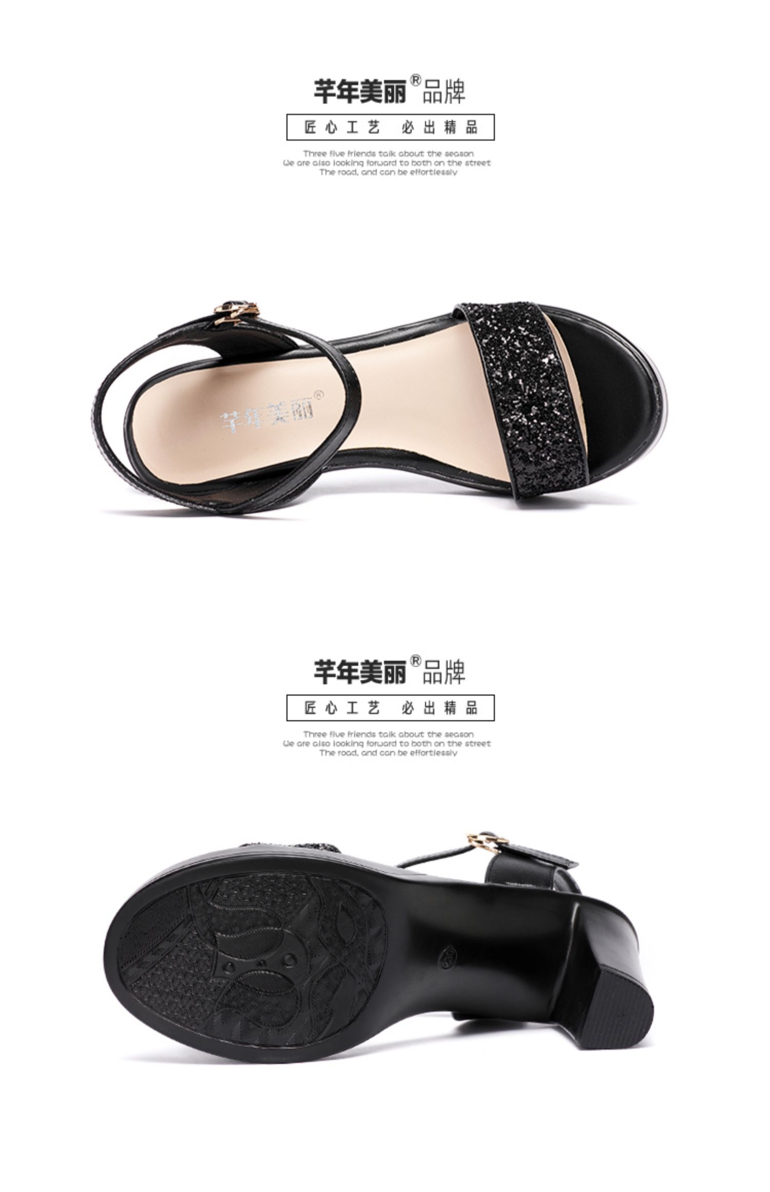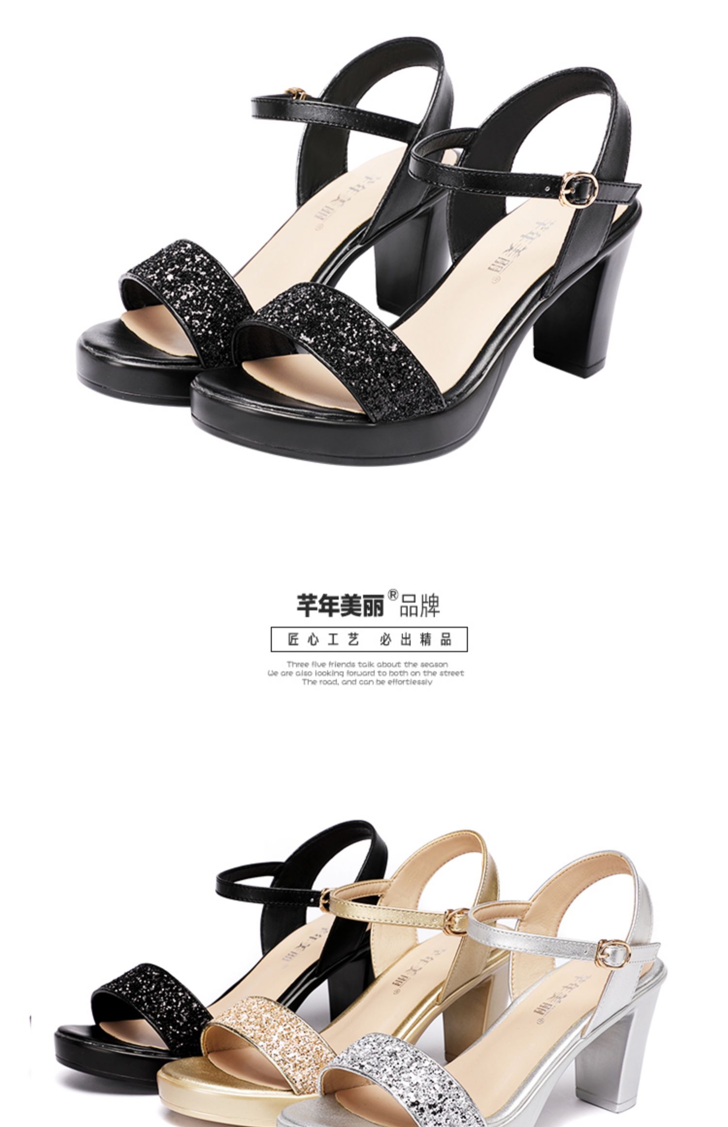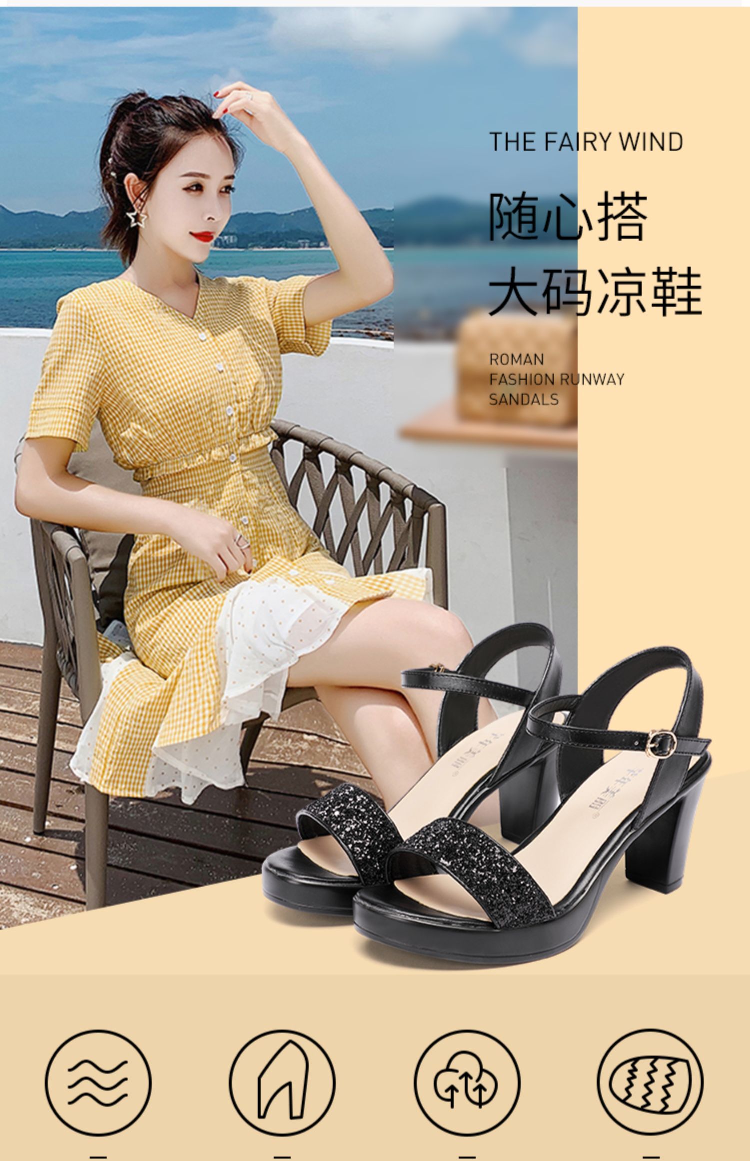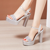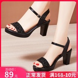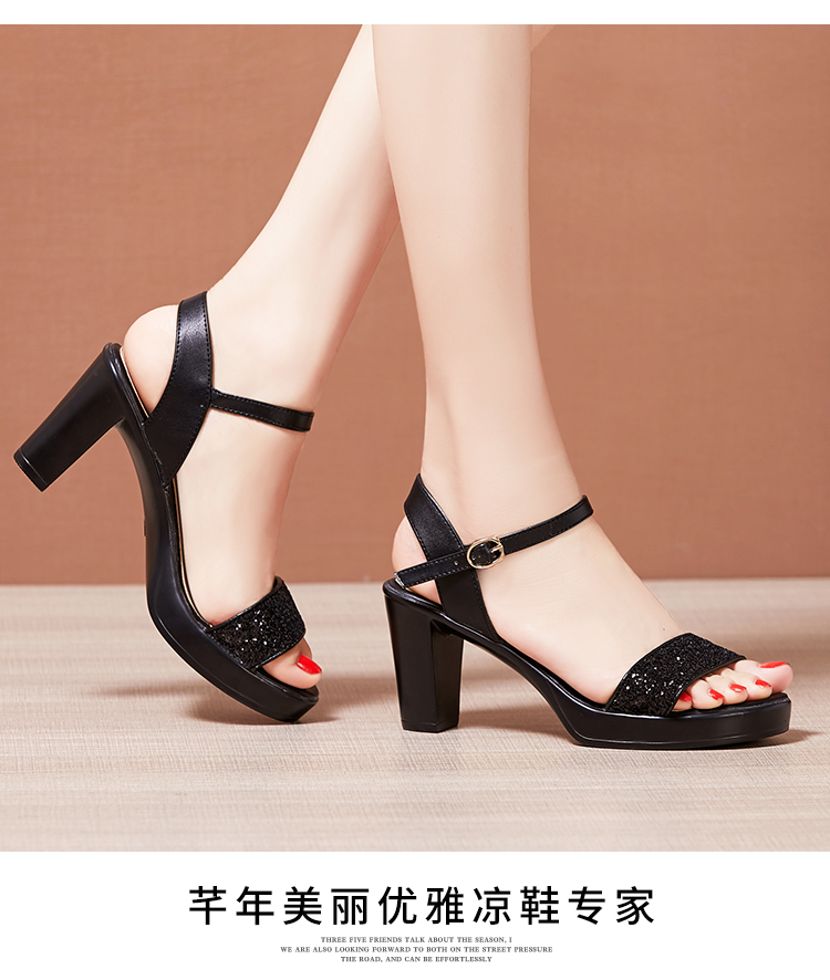 Средний каблук широкий каблук Сандалии женские 2021 лето новая коллекция водонепроницаемый башня пайетки большой размер 40-43 на высоком каблуке ОТКРЫТЫЕ ДЫ СУДАЛЛИ