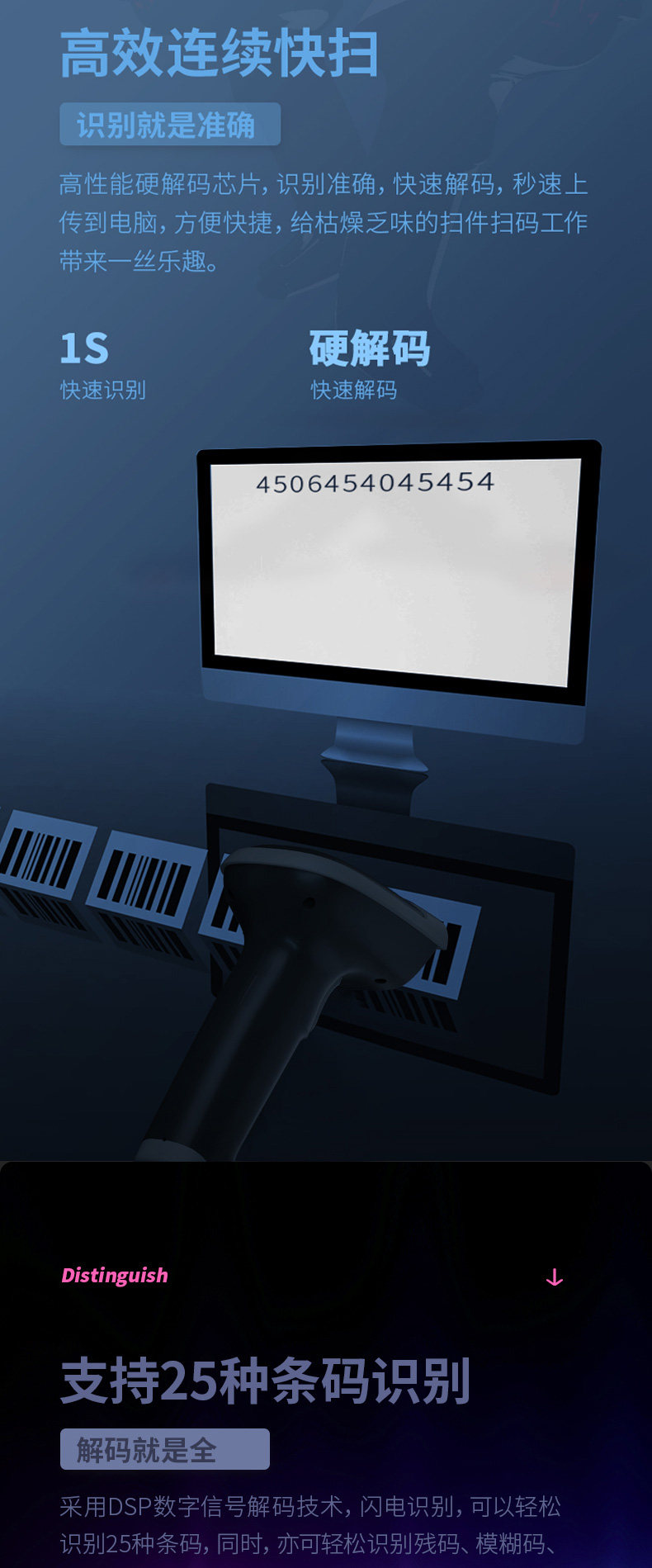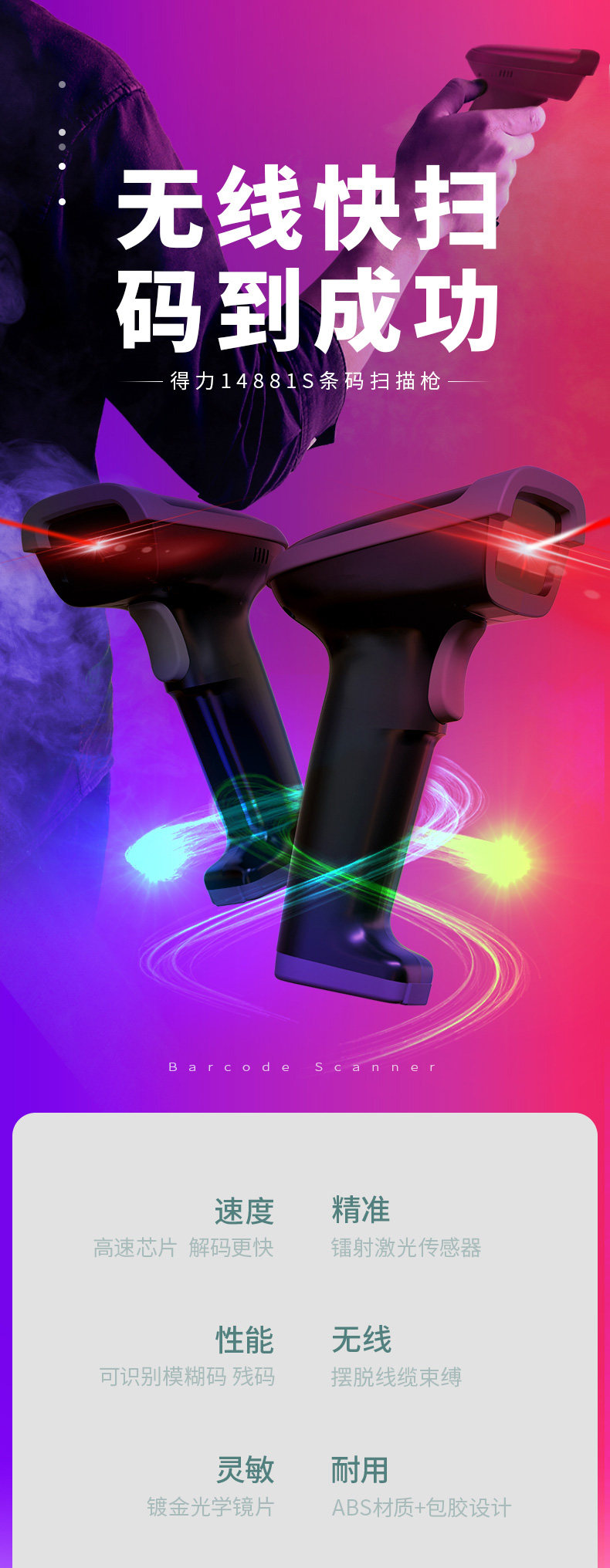 Дели 14881с без Линия рисование кода пистолет супермаркет кассовый аппарат ручной сканер платеж платеж кода коллекции кода стиль сканер