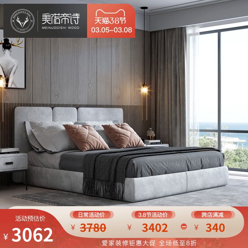 Сетка для кровати из ткани Nordic Technology красный Кровать Ins в стиле простой и современный поколение Кровать из ткани мягкая пакет Двуспальная кровать высокая Свадебная кровать в спальне Box