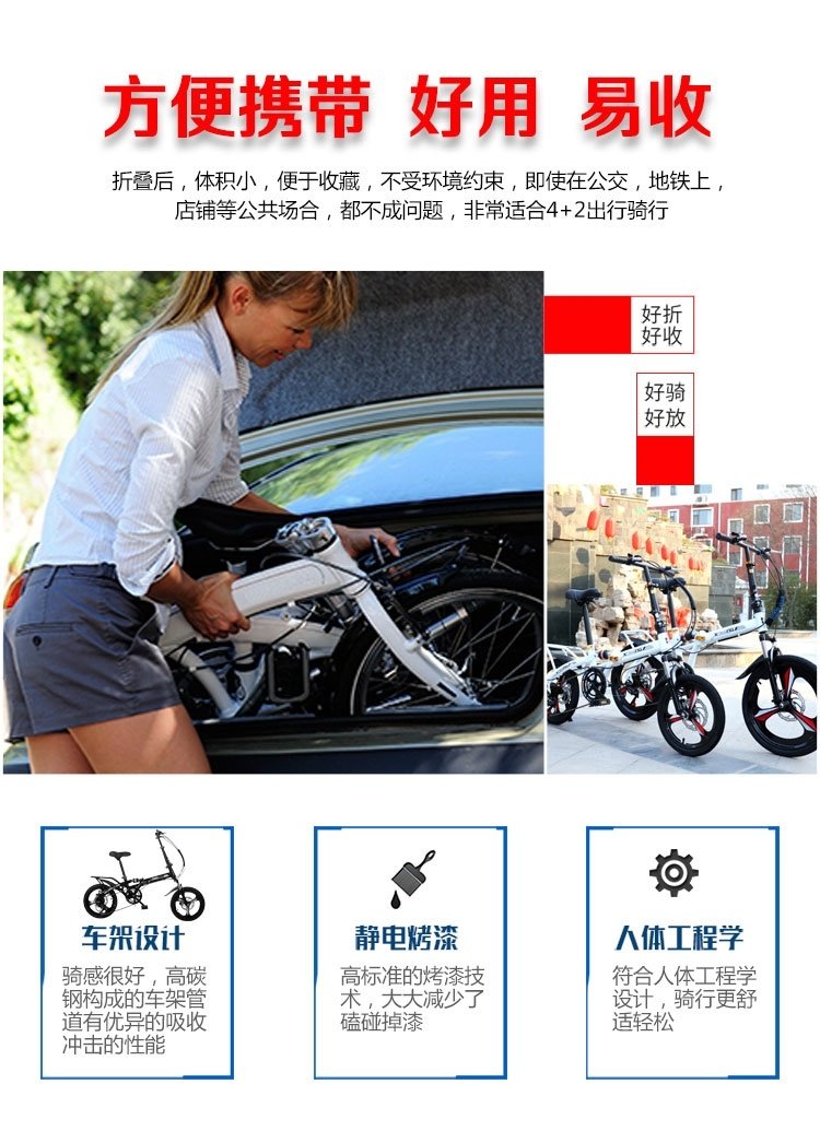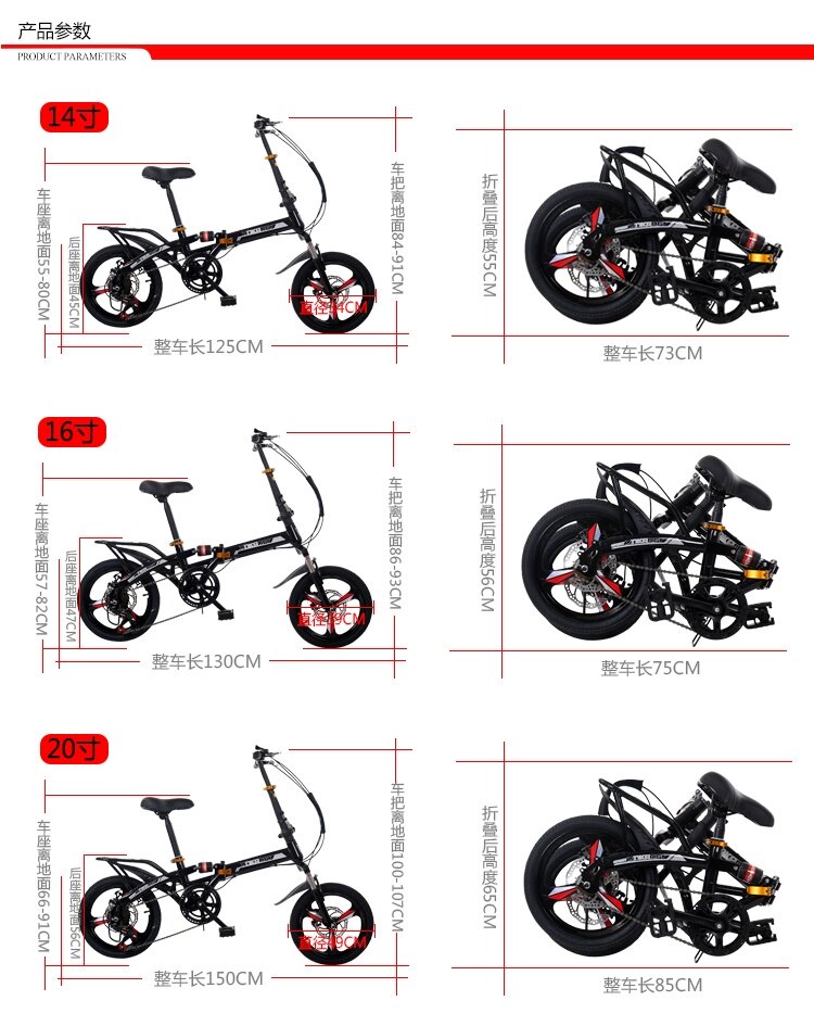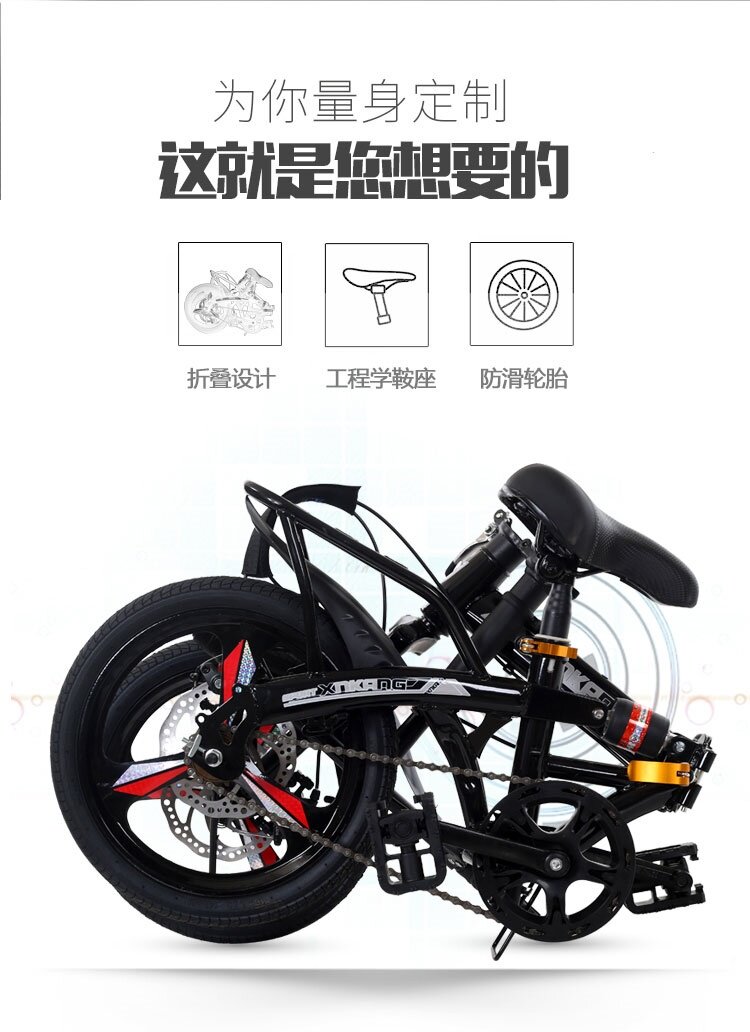 Портативный взрослый взрослый двойной дискорорный амортизатор поглощение 14/16/20 дюймов со складыванием Велосипед можно надеть на багажник