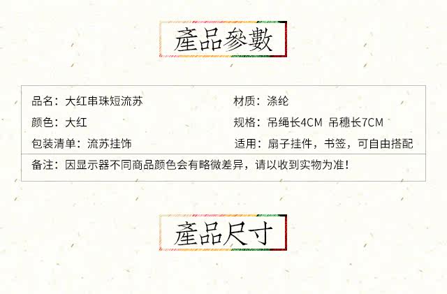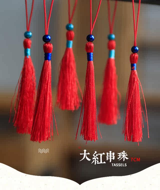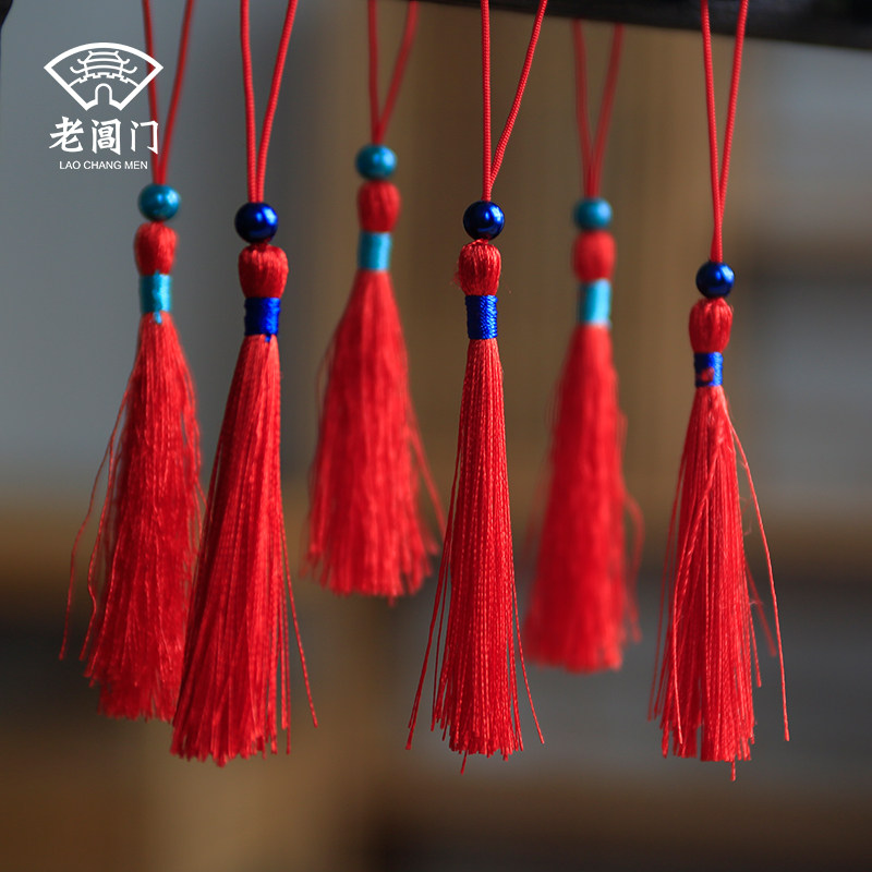 Старик дверь насыщенно-красный Коротко с бисером с бахромой Китайский вентилятор упаковывает одежда для бронжки, висит ушные аксессуары украшения орнамента с бахромой