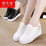 Весна женский для отдыха Небольшой белый Эта обувь толстая Приращение высокая Далеко почва женский Универсальная спортивная внутренняя истина высокая Женская одежда кожаная обувь