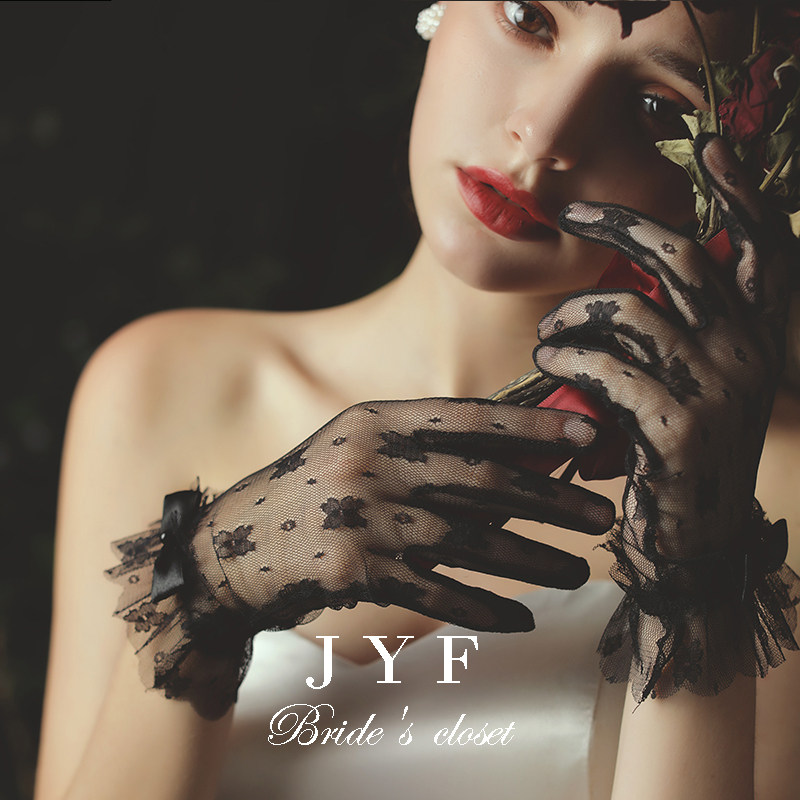 Кружево перчатки короткий Сексуальная сетка винтаж Грейс черный новый Nianghua замужнее фото производительность свадебное Свадебное платье