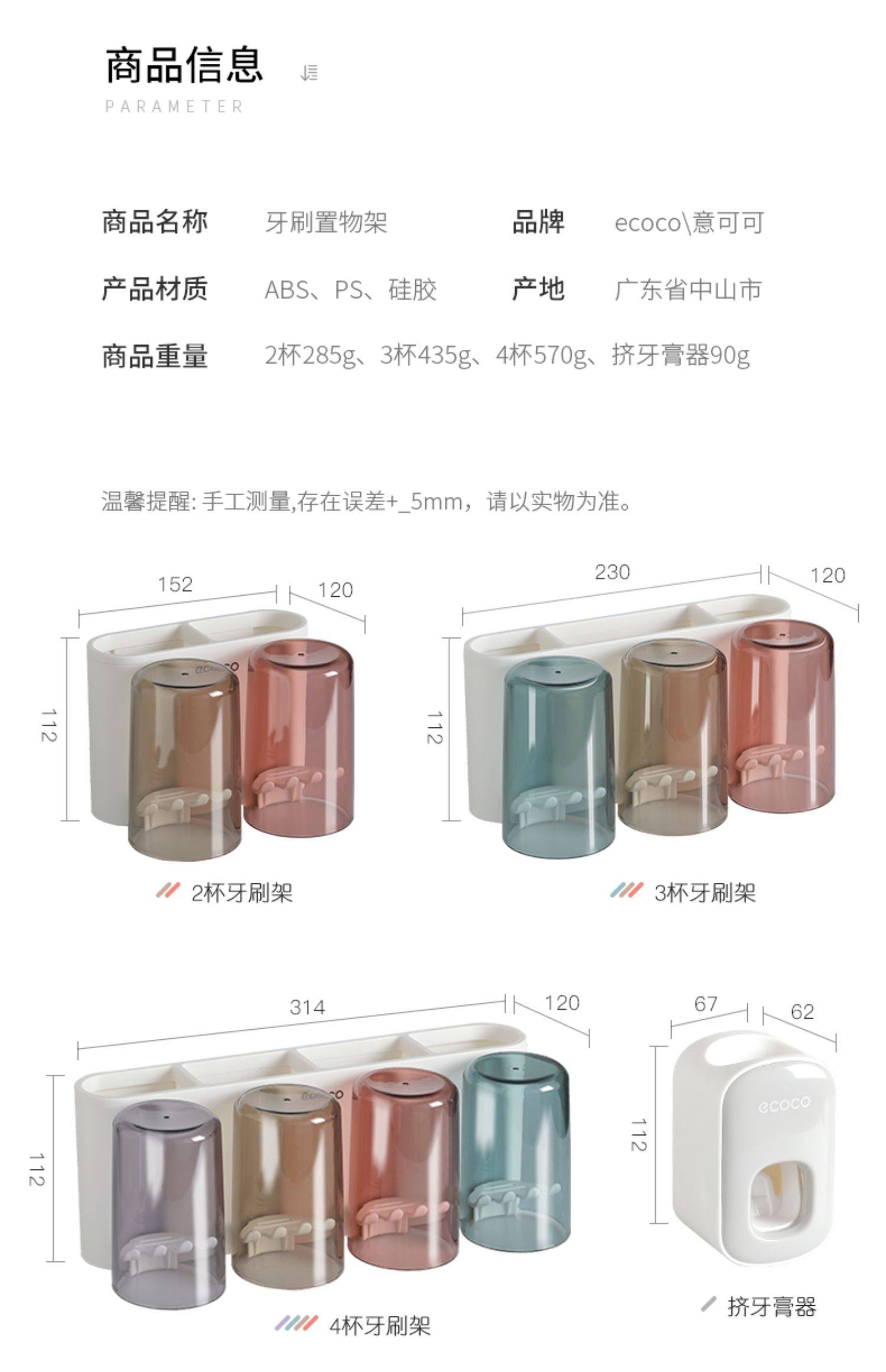 - Три стакана зубной щетки+сжатие зубной пасты (серая белый )