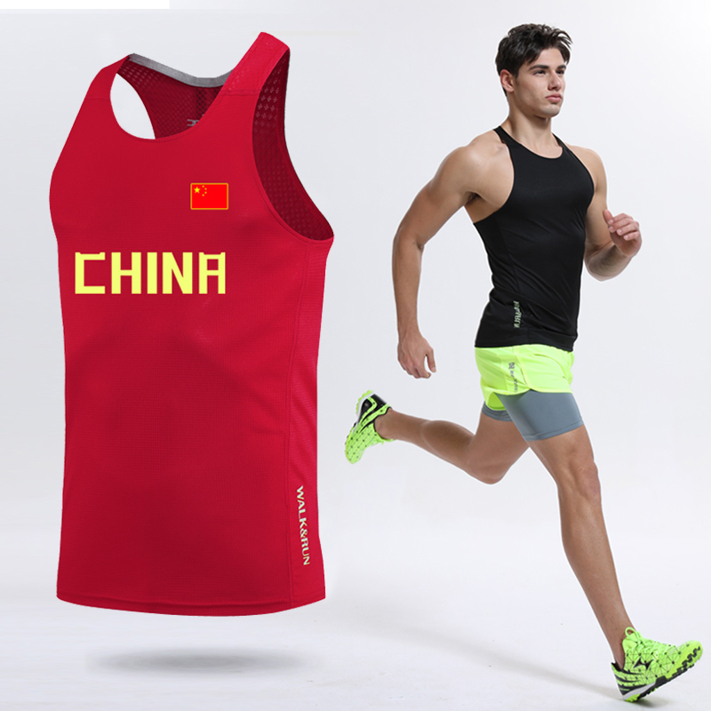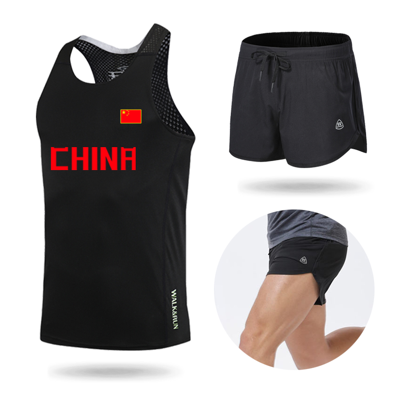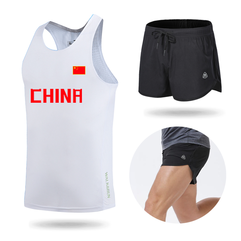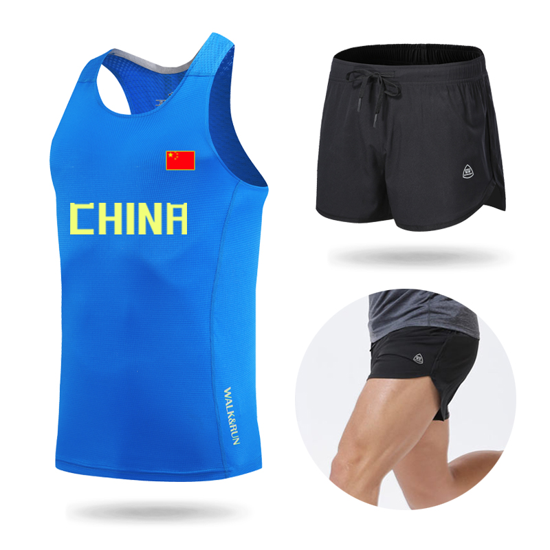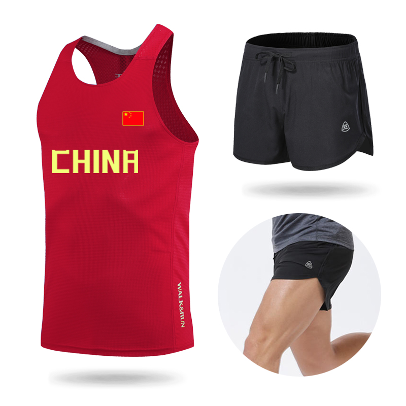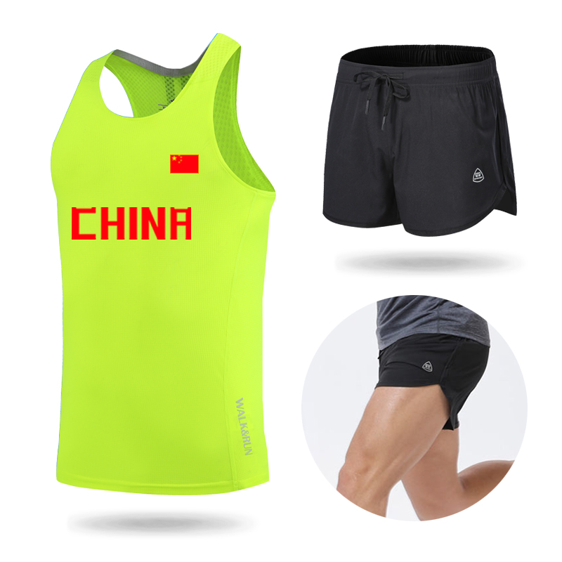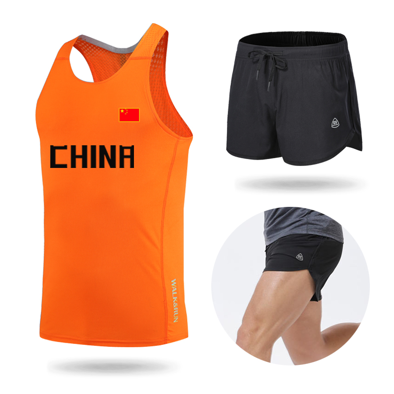 Трек и поле слово Жилет один верх Одежда мужские и женские спортивный комплект Фитнес брюки скорость сухой летний марафон тренировочный костюм