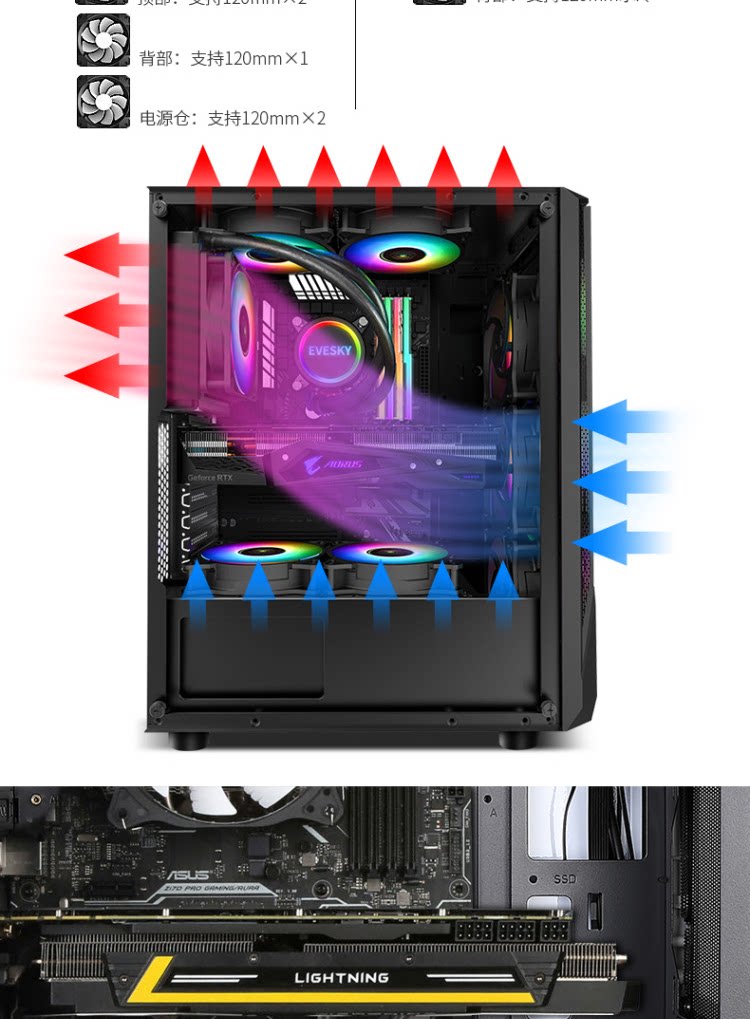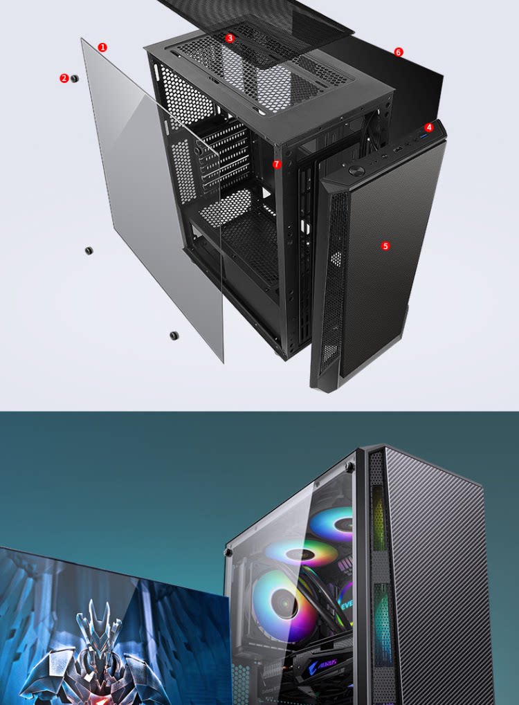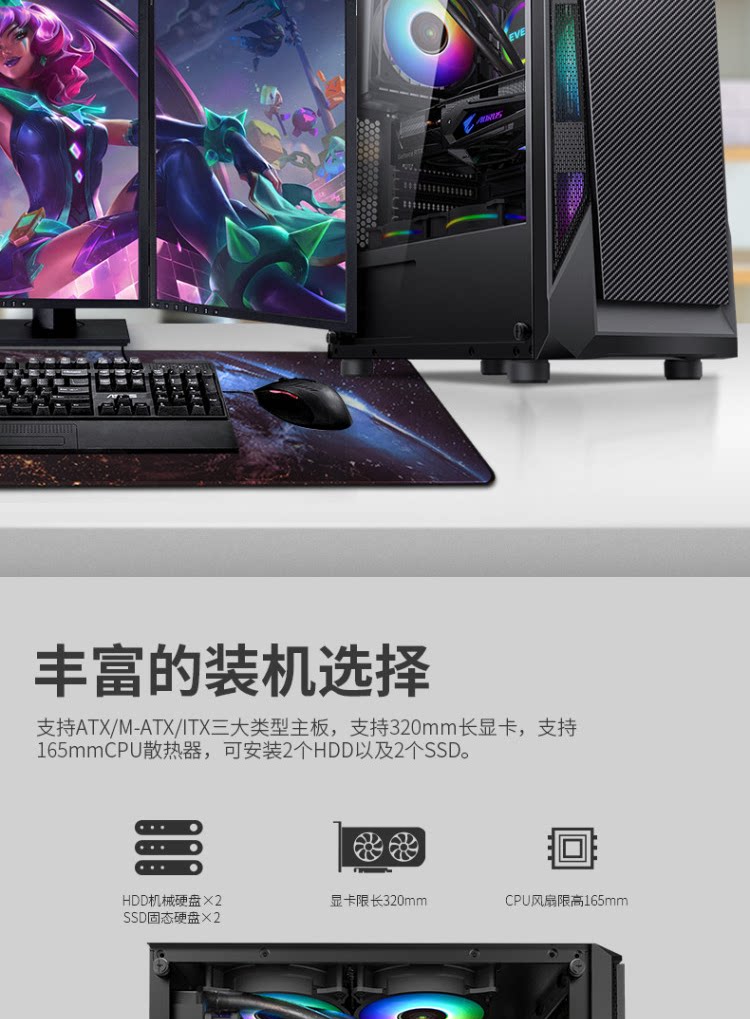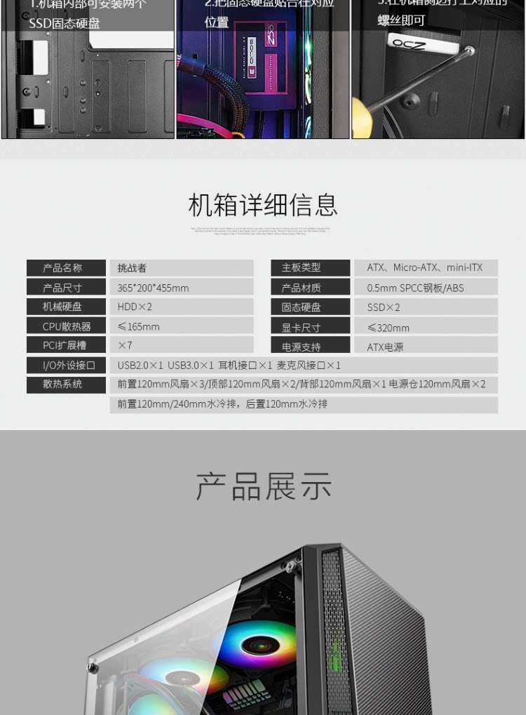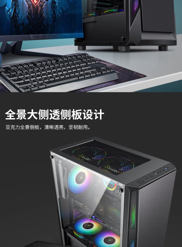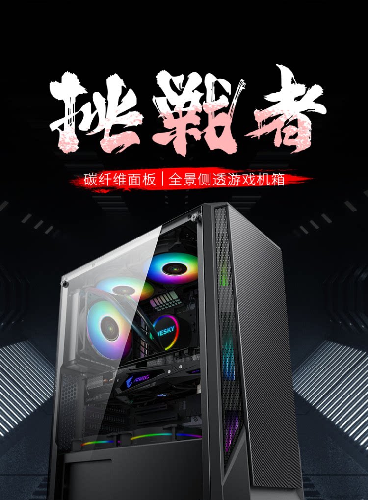 Завершите доверию Challenger Computer Box Desktop Game Charsis Back Line сторона ATX Big панель Шасси