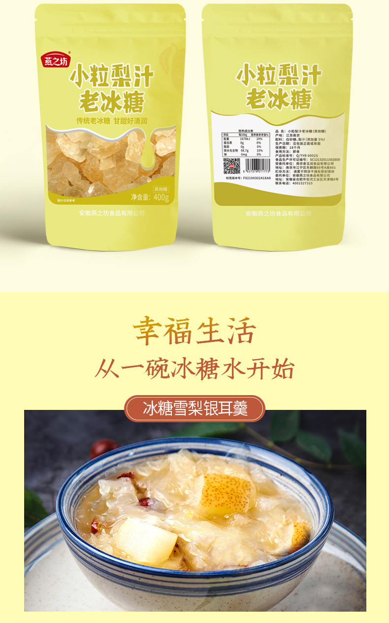 Яньжифанг грушевой сок старый рок сахар желтый рок сахар старый рок сахар маленькая капсула поликристаллический сахарный тувесервию туве каши каши около 400 г