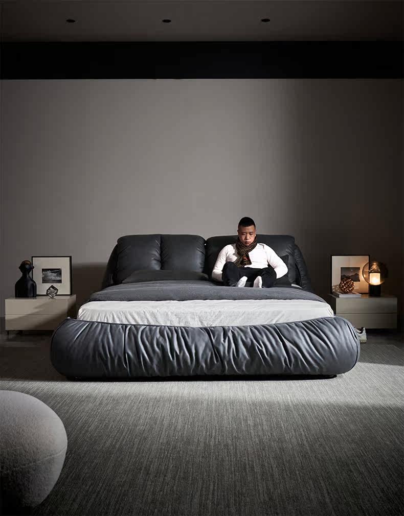 Такие как поколение Простые облака мягкие пакет Тканевая кровать съемная темно серый Технологическая ткань двуспальная кровать 1,8 метра BD007