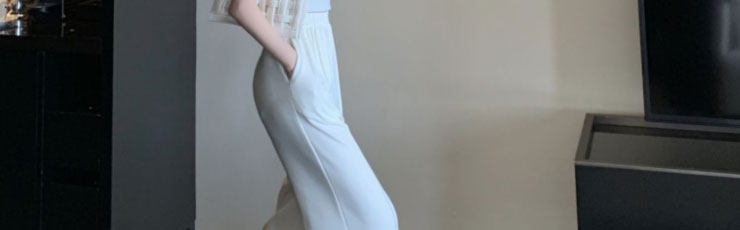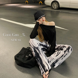 2022 лето новая коллекция Французская раскрытая Умбилица, сексуальная половина усечения жилета высокая Талия черновик широких ног штаны два наборы Пакет