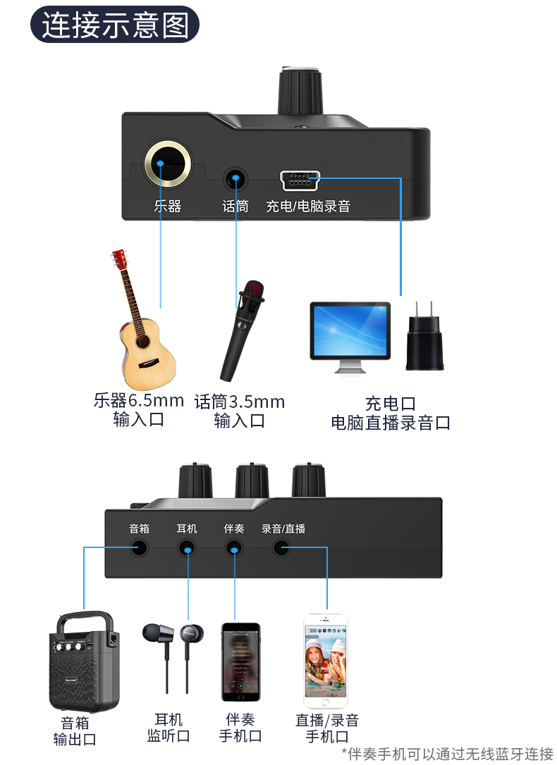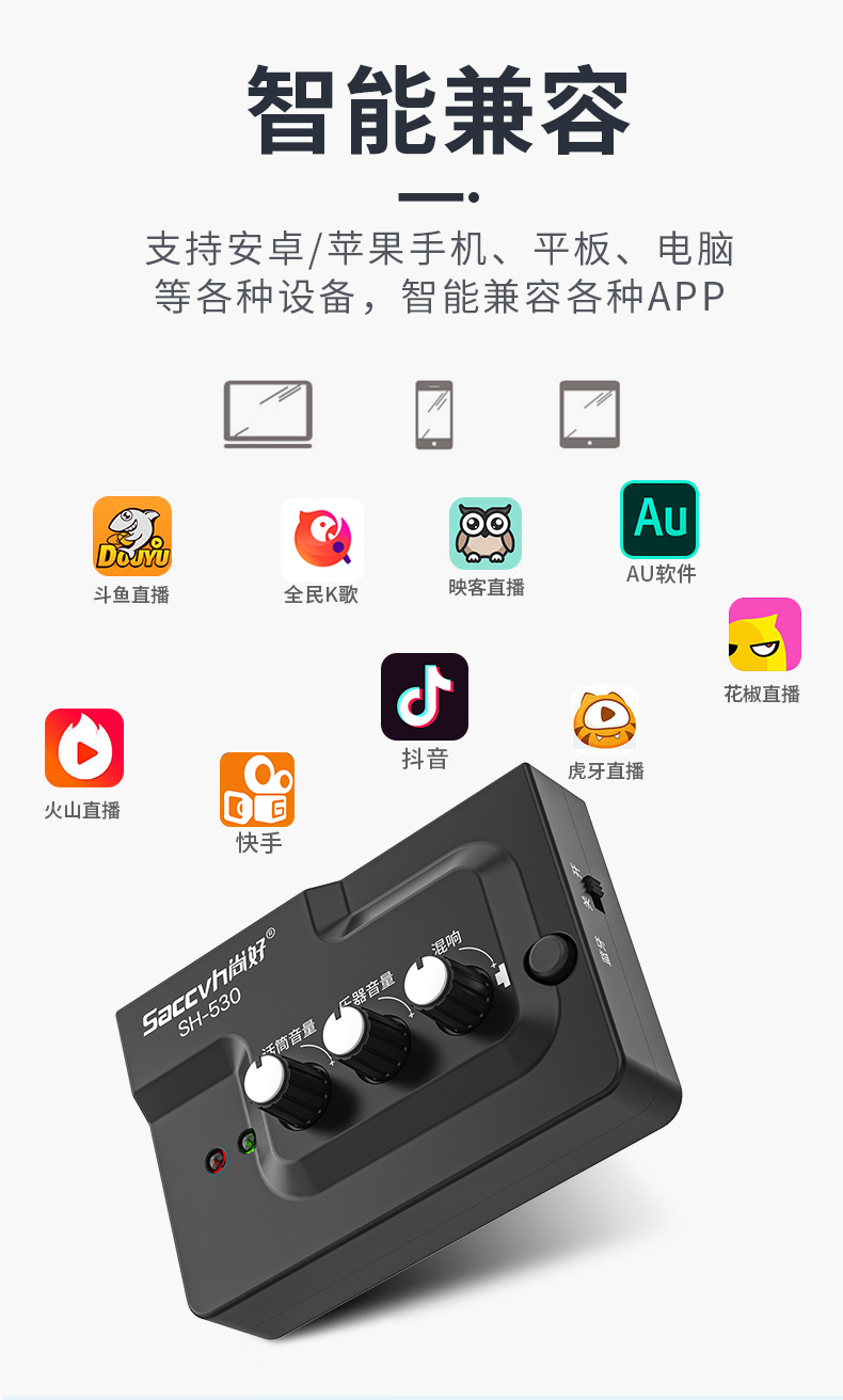 Shang Good Sh530 535 Гитара Live Play Регистрация Звуковая карта Саксофон Духовой трубки Эффект Мобильный телефон Музыкальный инструмент