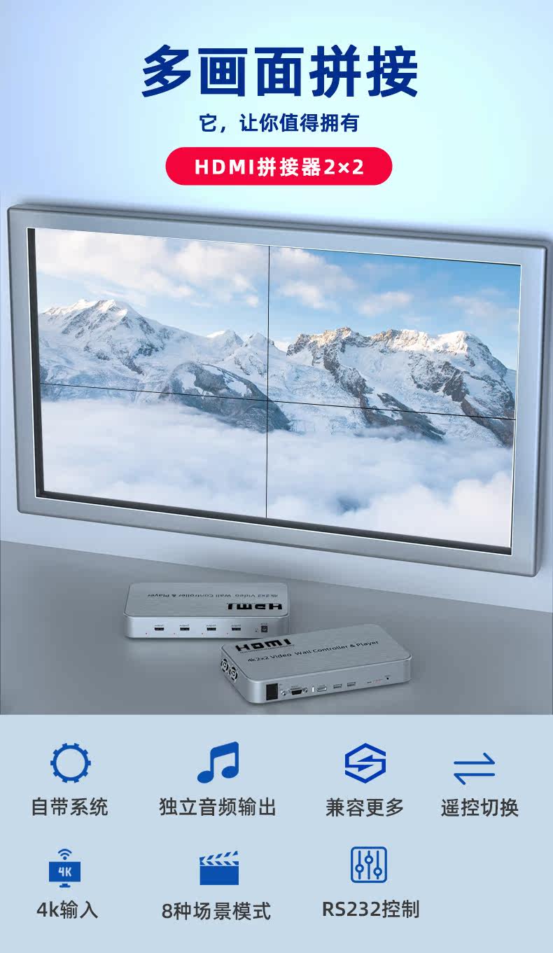 Younly HDMI экран сращивания экрана контроллер 4k высокая Многоэкранный процессор Qing 2x2 RS232 система декодер
