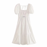 Летнее цветное платье, 2020, квадратный вырез, рукава фонарики, оверсайз, с открытой спиной
