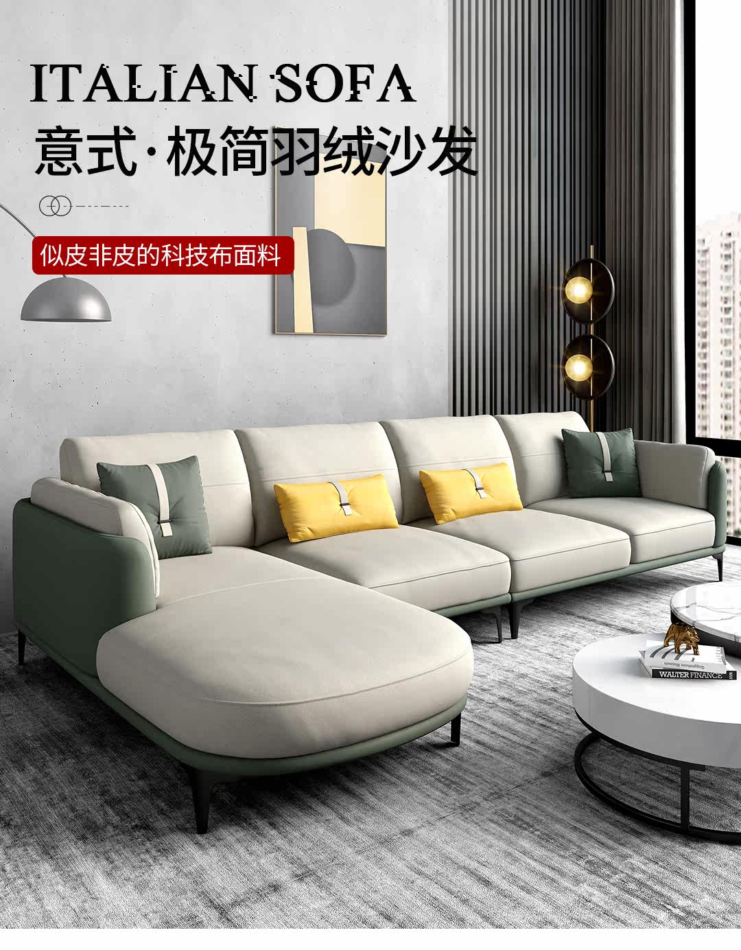 Yiji -Like Light Luxury Technology диван ткани вниз по размеру квартиры угол гостиной Nordic Simploity поколение комбинация