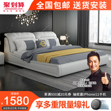 Легкая роскошная кровать красный Главная спальня поколение Минималистская голова кожаный Двуспальная кровать Nordic из натуральной кожи Кровать 1,8 м-кожи
