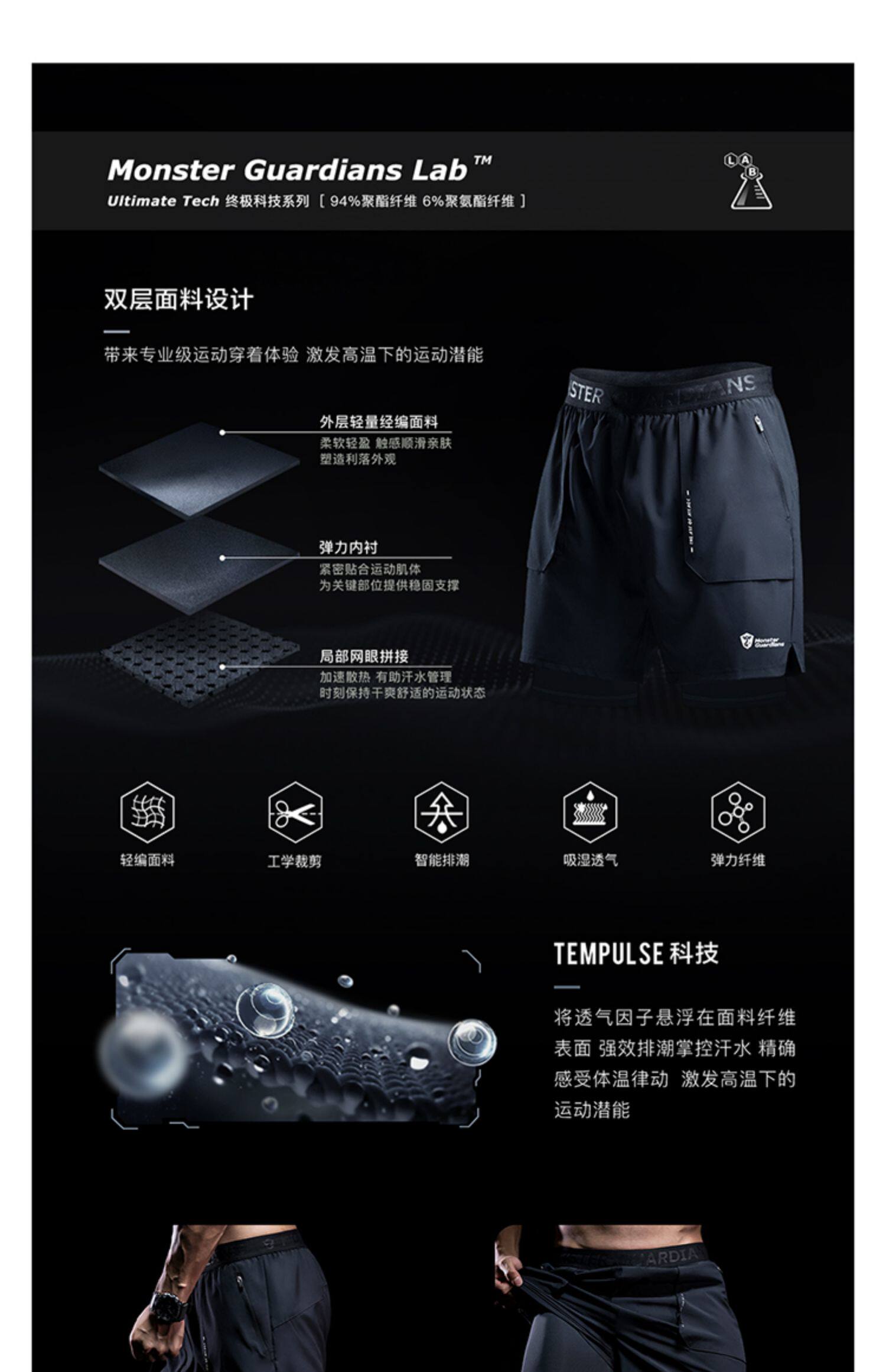 Monster Guardians Спорт Пять Брюки Подкладки Тренировка быстрых фитнес Марафон Шорты мужской