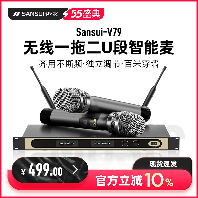 Сансуй / Шаньшуй без Линейный микрофон с двумя микрофонами металлический Регулируемый частота Сценический спектакль, семейный КТВ, домашний крик, профессиональный спектакль комплект Профессиональный усилитель звука