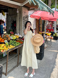 CML висит шеи платье женское 2021 новая коллекция Летняя свободная юбка голубой Юбка винтаж без длина рукава юбка