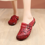 Тапки женский из натуральной кожи Этнический ветер в материнской обуви удобно нескользящие Бык сухожилия красный тапки пакет Головной половину тапки