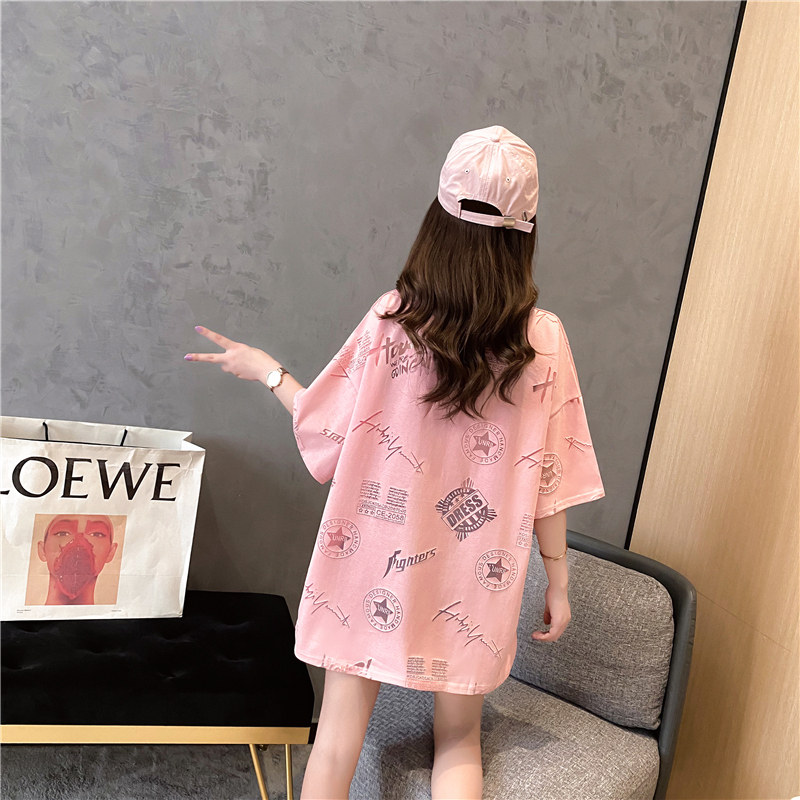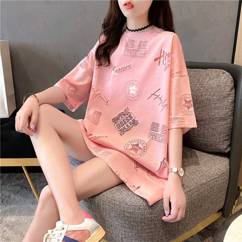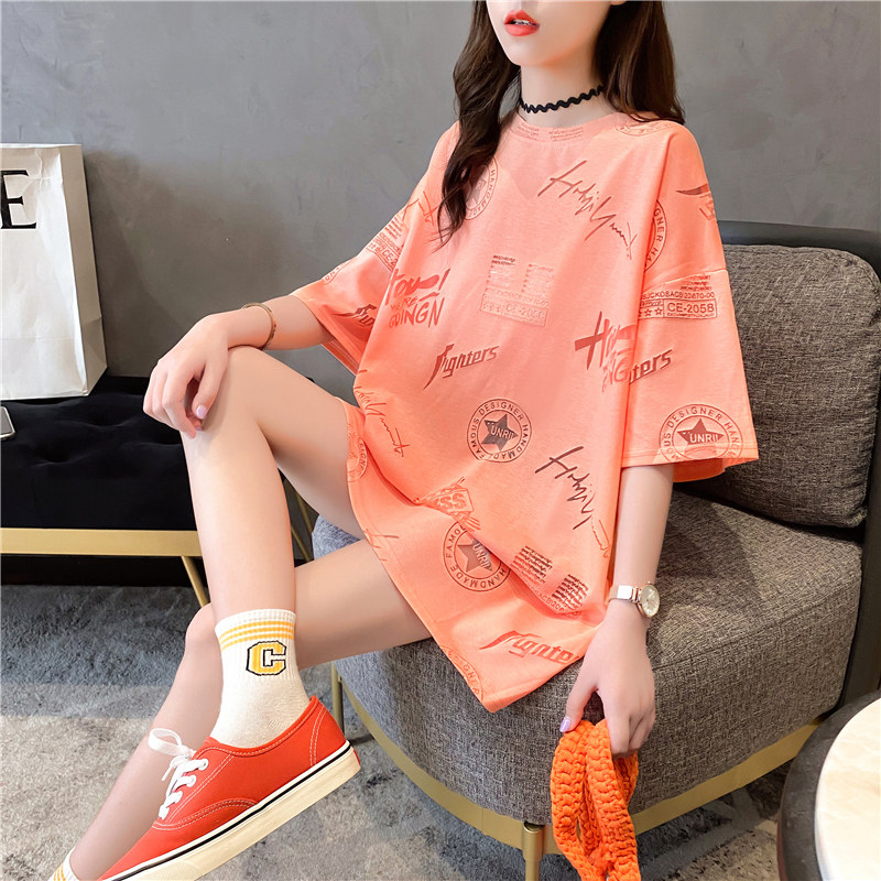 Сеть красный Свободный фасон средней длины стиль короткий рукав Футболка женская 2022 новая коллекция Летний европейский дизайн верх Одежда Ins супер пожарный прилив