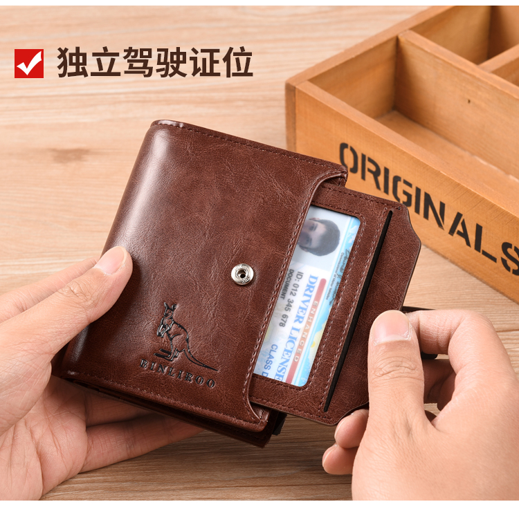 Binli Kangaroo мужской Деньги пакет Многофункциональность вождение Карта познания пакет короткий из натуральной кожи ДЕНЬГИ ЗАЖИМА мужской Бумажник
