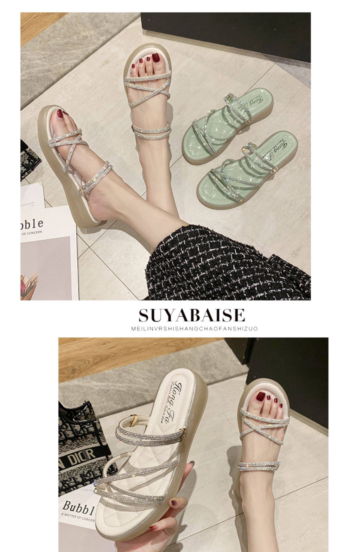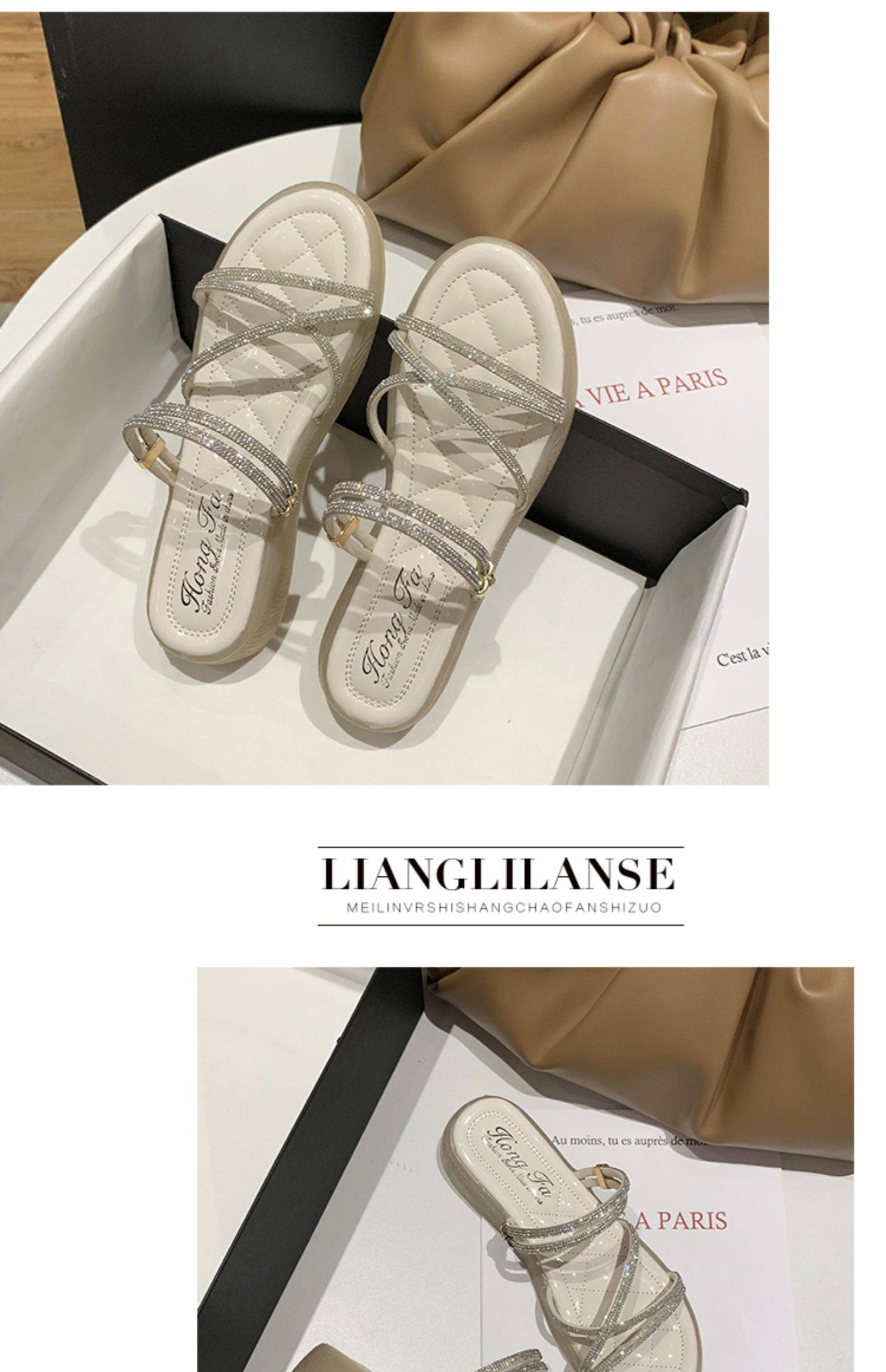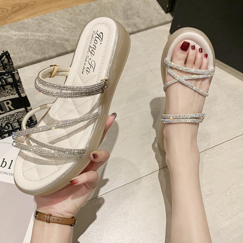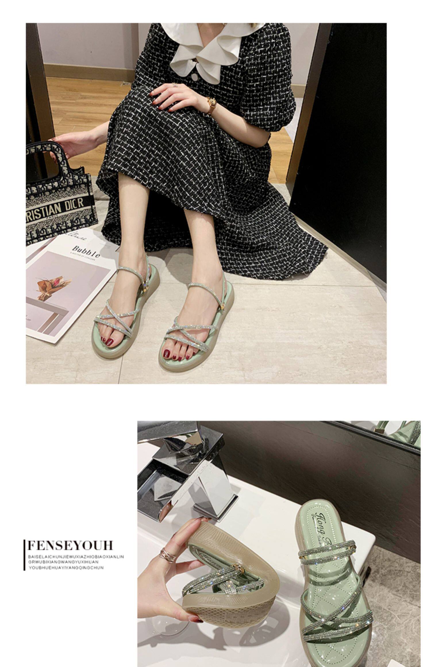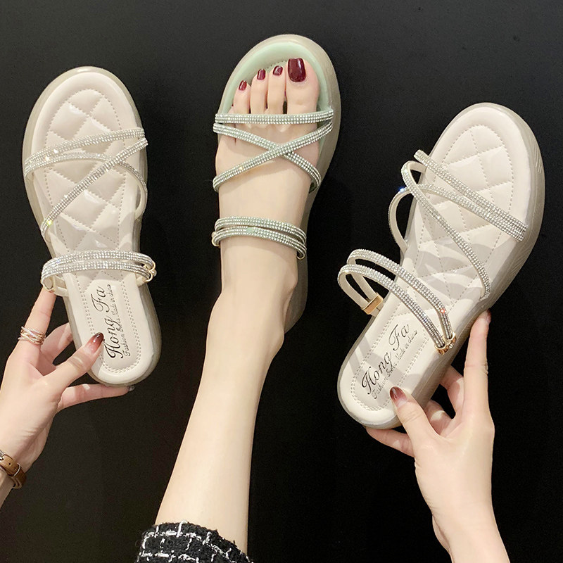 Две сандалии женский фея ветер 2021 новая коллекция лето женский на танкетке Водяное бурение прилив тапки Женский носить